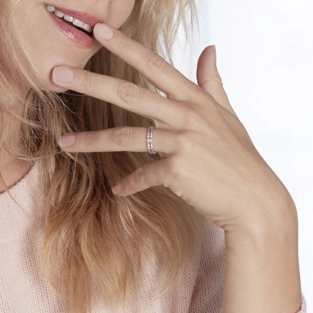 Alliance Or Blanc 375/1000 Fantaisie Ajourée 2 Rangs Diamantée 4.5mm