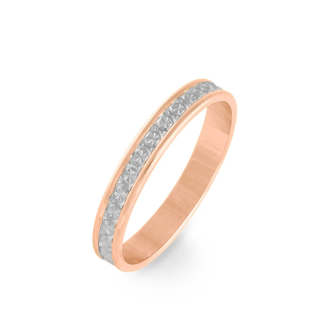 Alliance Or Bicolore 375/1000 Fantaisie Rose Et Blanc 3mm