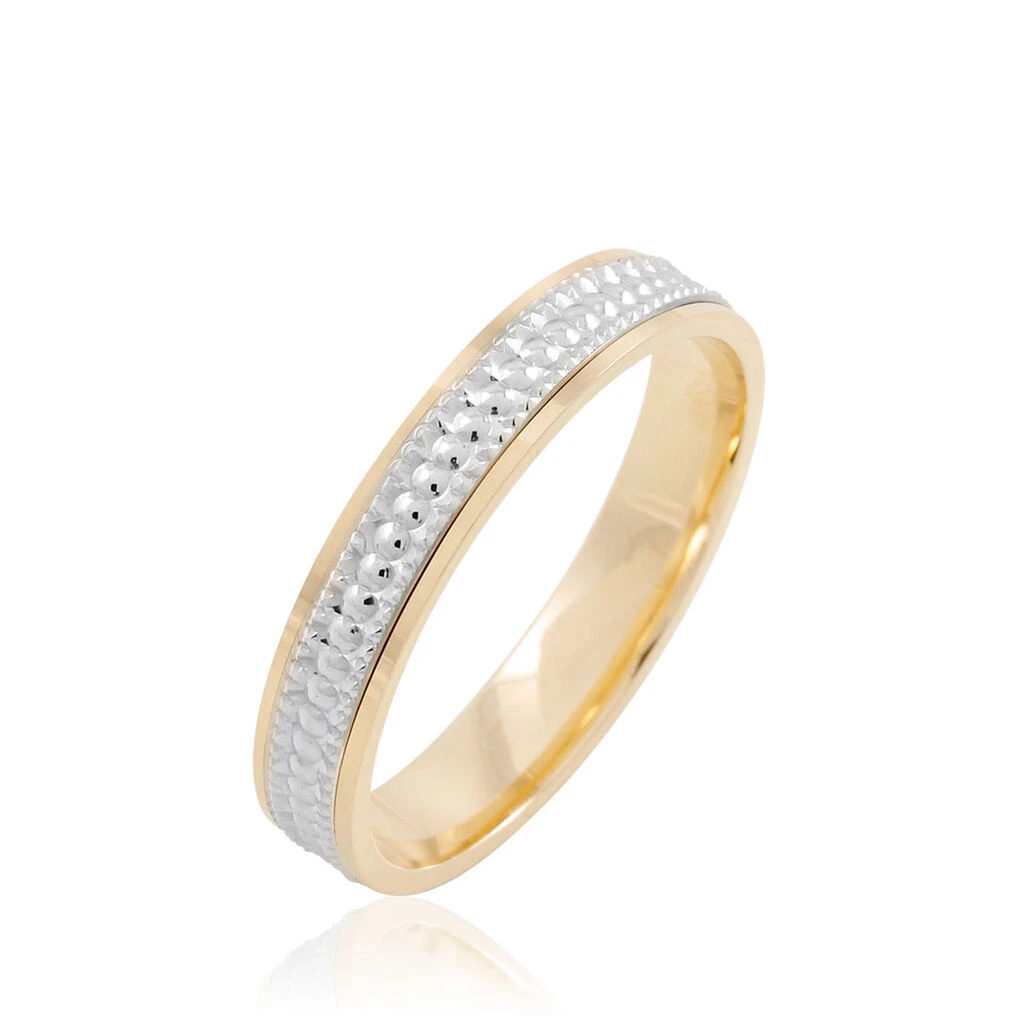 Alliance Or Bicolore 750/1000 Jaune Et Blanc Fantaisie Diamantée 3.5mm