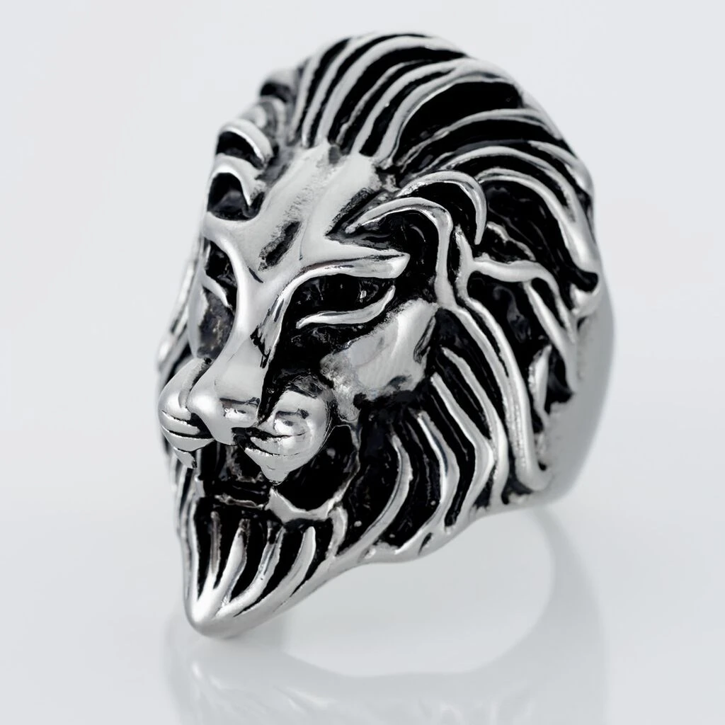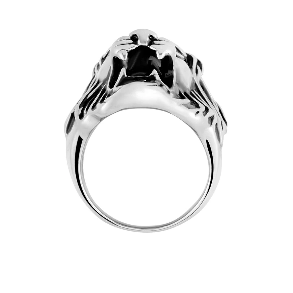 Bague Acier Gris Tete De Lion