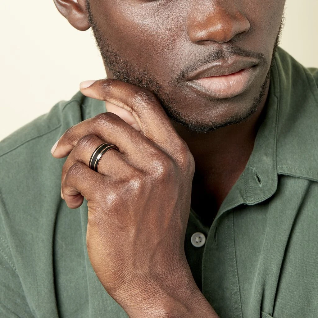 Bague Jourdan Homme Acier Noir Anneau Interieur Acier Rose Ou006h/58