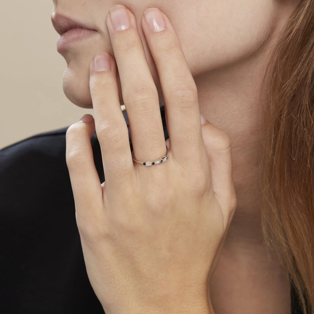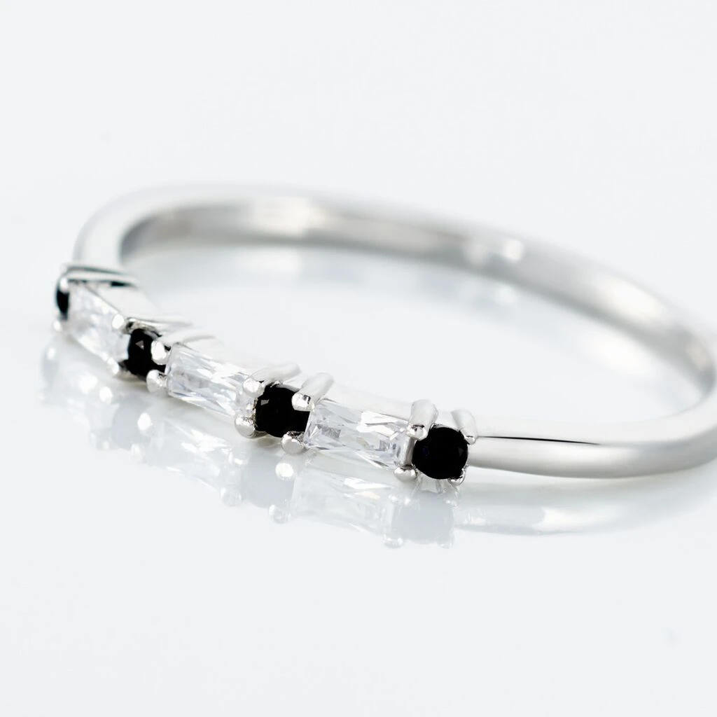 Bague Argent 925/1000 Oxydes De Zirconium Alternés Noirs Et Blancs