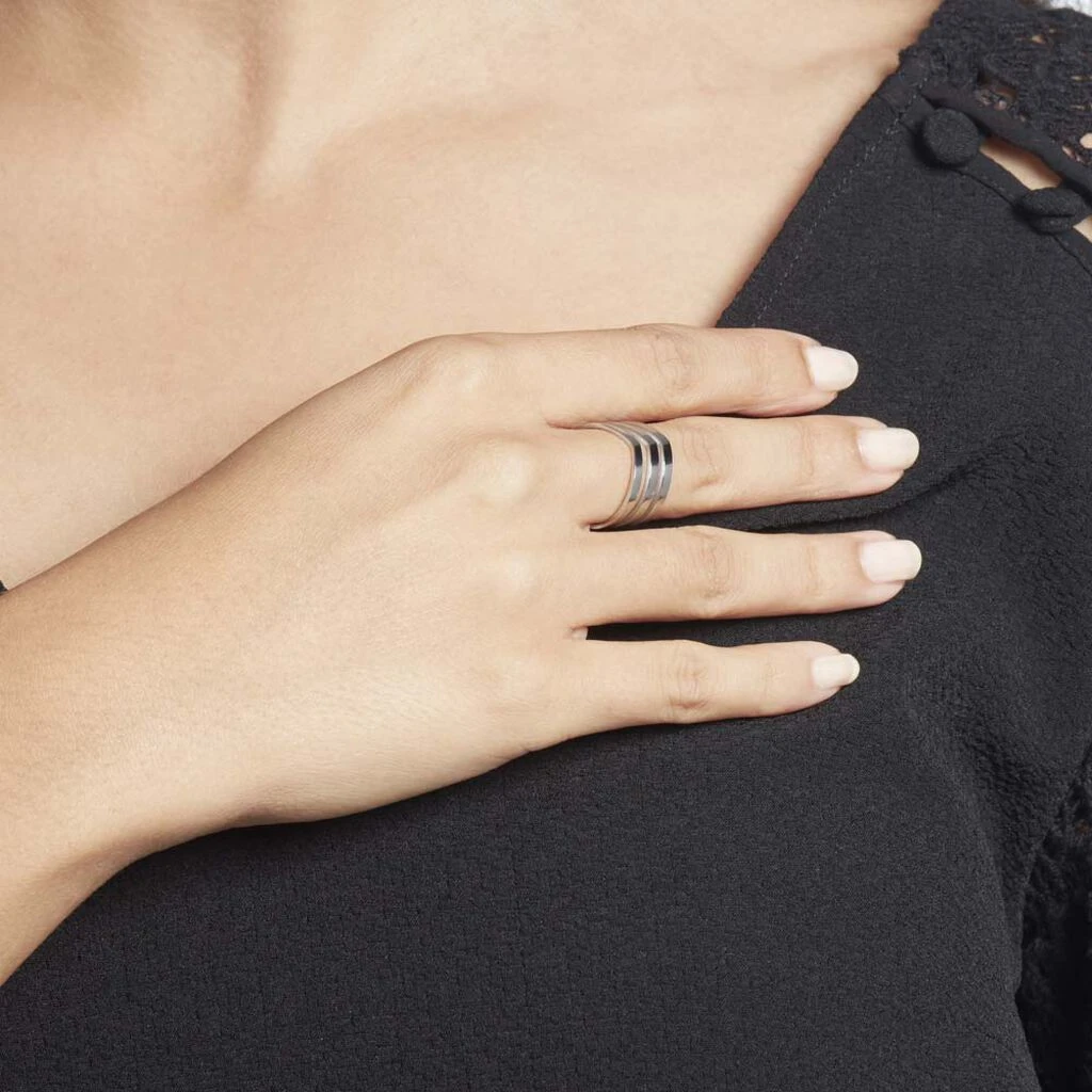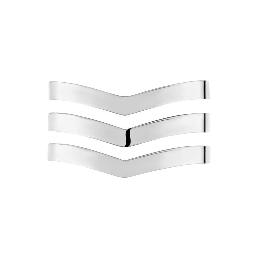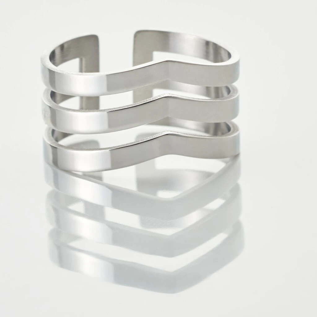 Bague Ajustable Acier Blanc Triple Rang Ajoure Forme Aile De Mouette