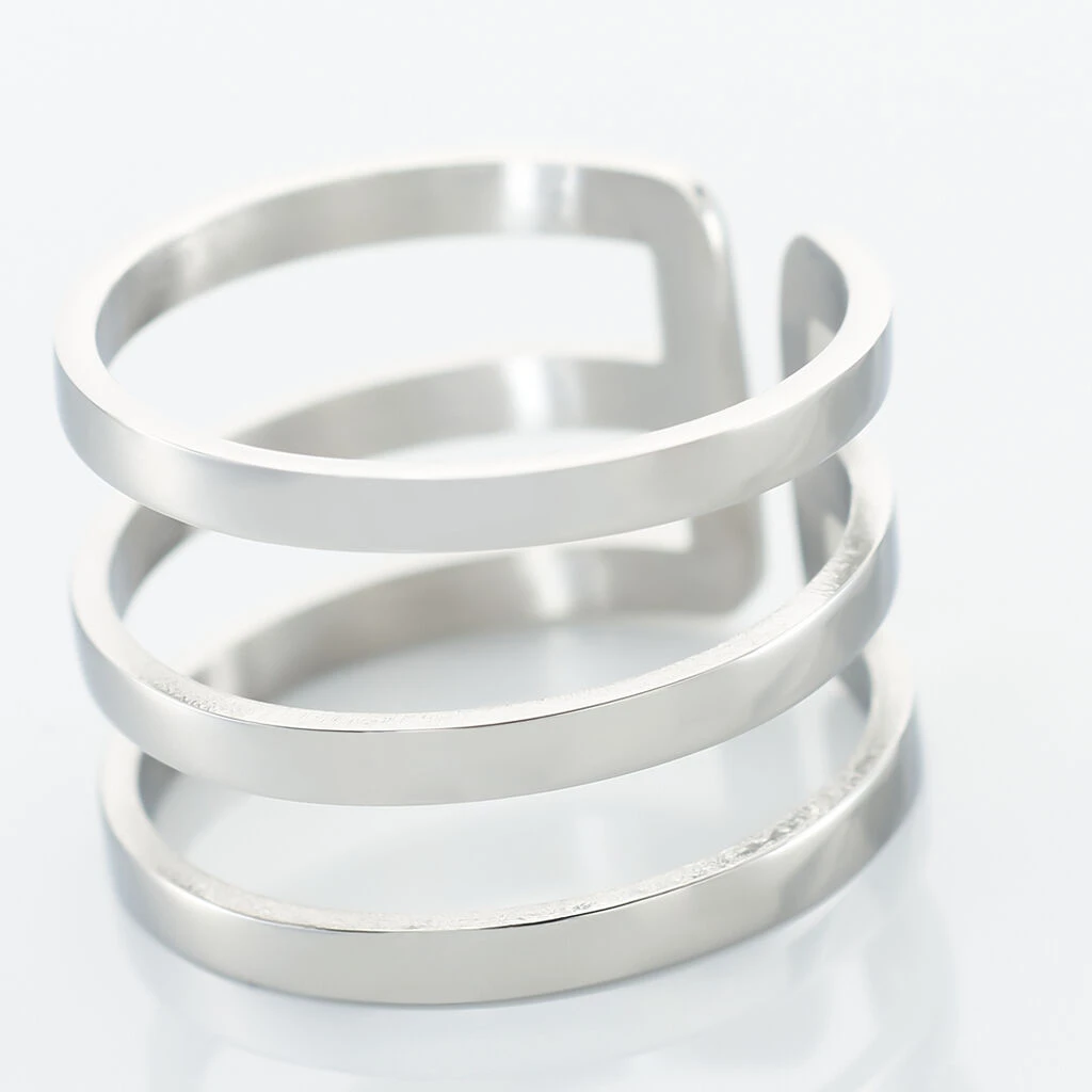 Bague Ajustable Acier Blanc 3 Rangs Ajoures