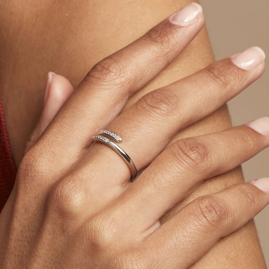 Bague Ajustable Mendel Argent Blanc Oxyde De Zirconium