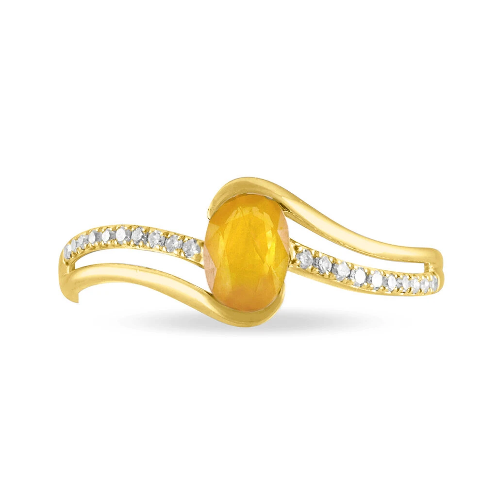 Bague Or Jaune 750/1000 Citrine Centrale Et Vague Diamants