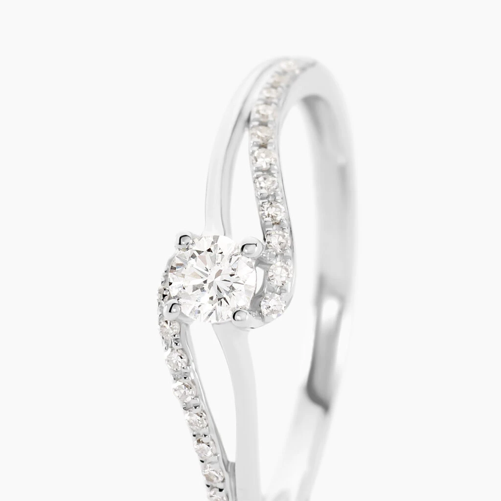 Bague Or Blanc 375/1000 Diamants Central Et Corps Bague Accompagne 0.11cts