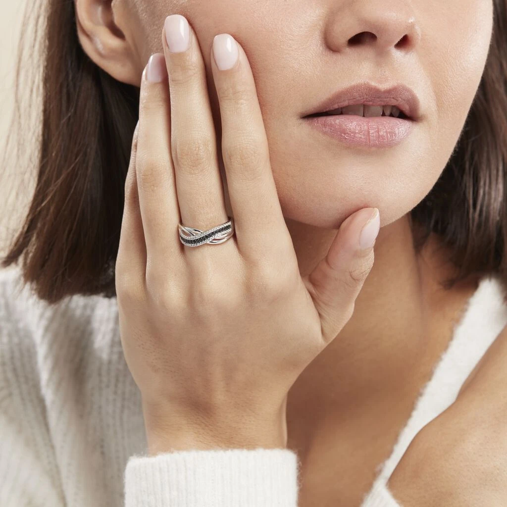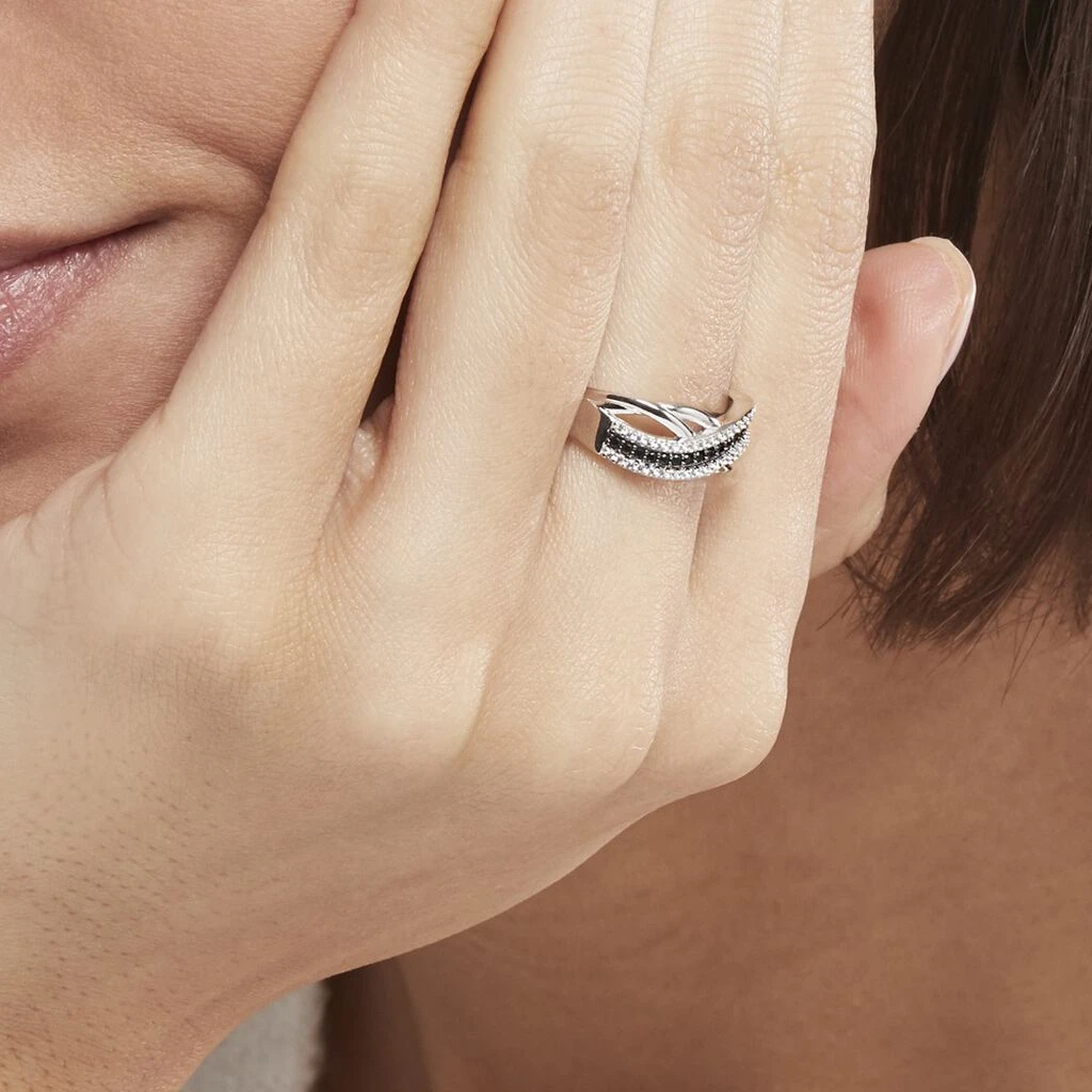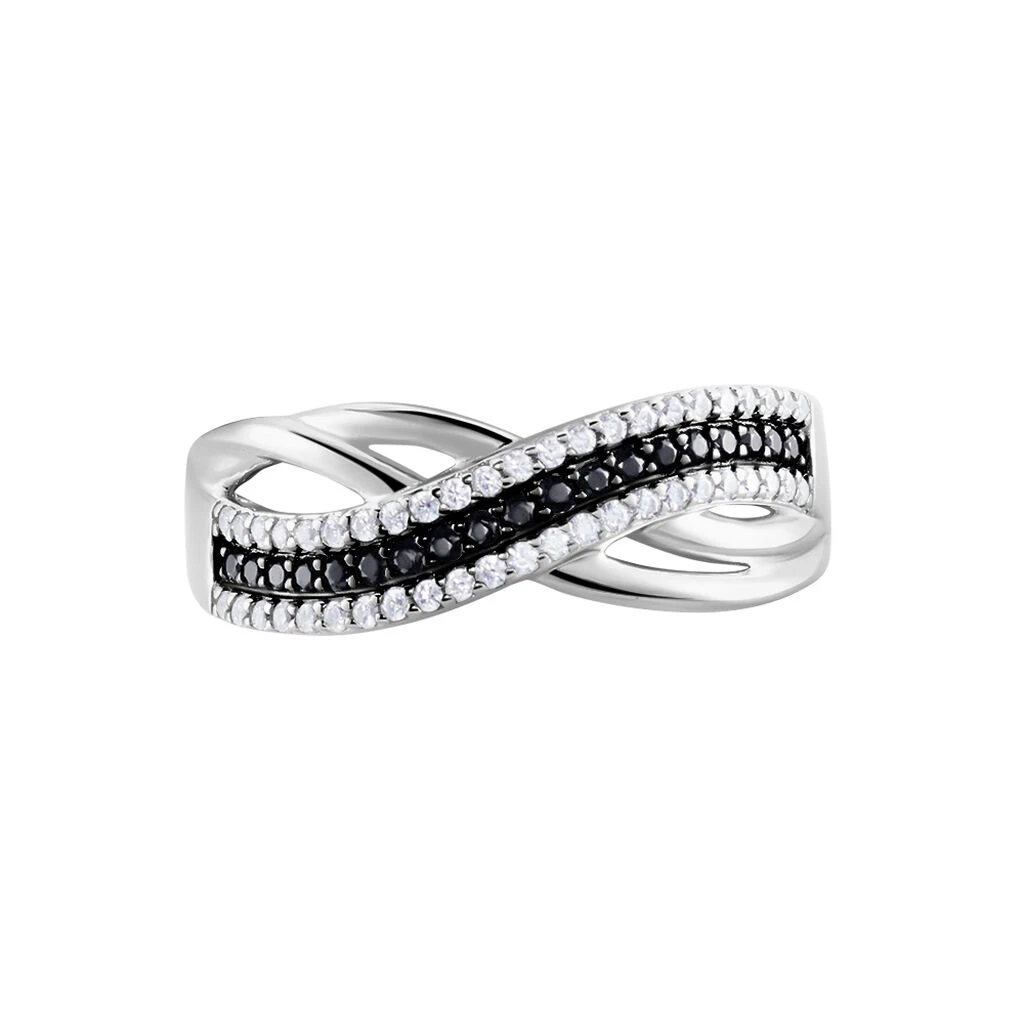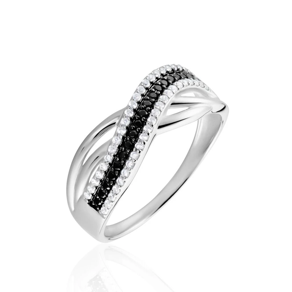 Bague Argent Blanc 925/1000 Vrilles Pavage Oxydes De Zirconium Noirs Et Blancs