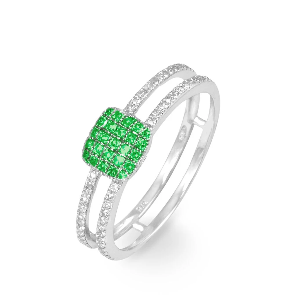 Bague Or Blanc 375/1000 Coussin Grenats Verts