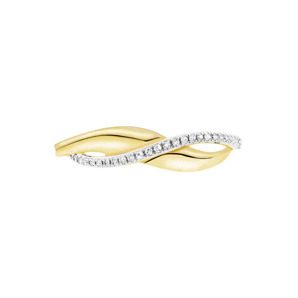 Bague Or Jaune 375/1000 Forme Vagues Entrelacees Pavage Diamants