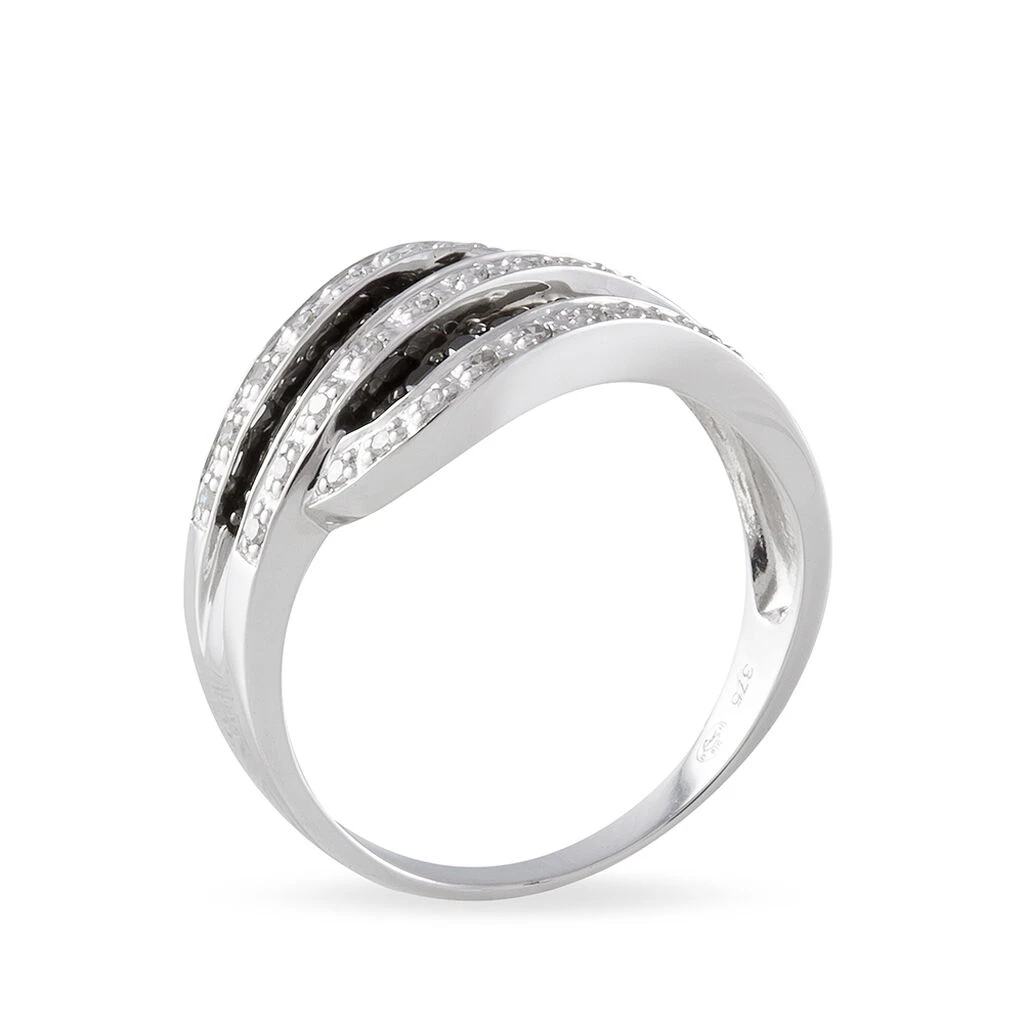 Bague Or Blanc 375/1000 Vagues Diamants Noirs Et Blancs 0.37ct Micro Serti