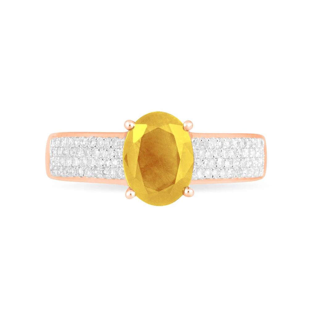 Bague Or Rose 750/1000 Citrine Ovale Accompagnée Diamants Gm