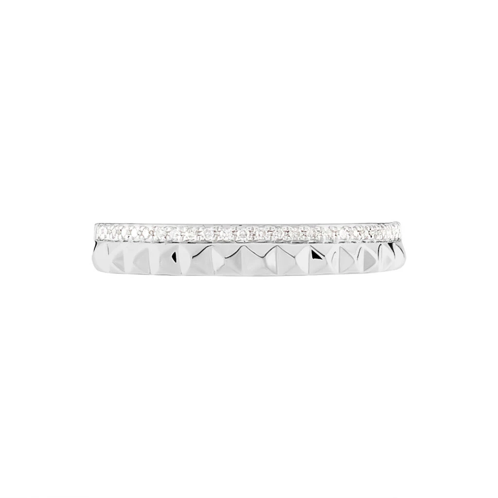 Bague Or Blanc 375/1000 Anneau Effet Cloute Et Pavage Diamants