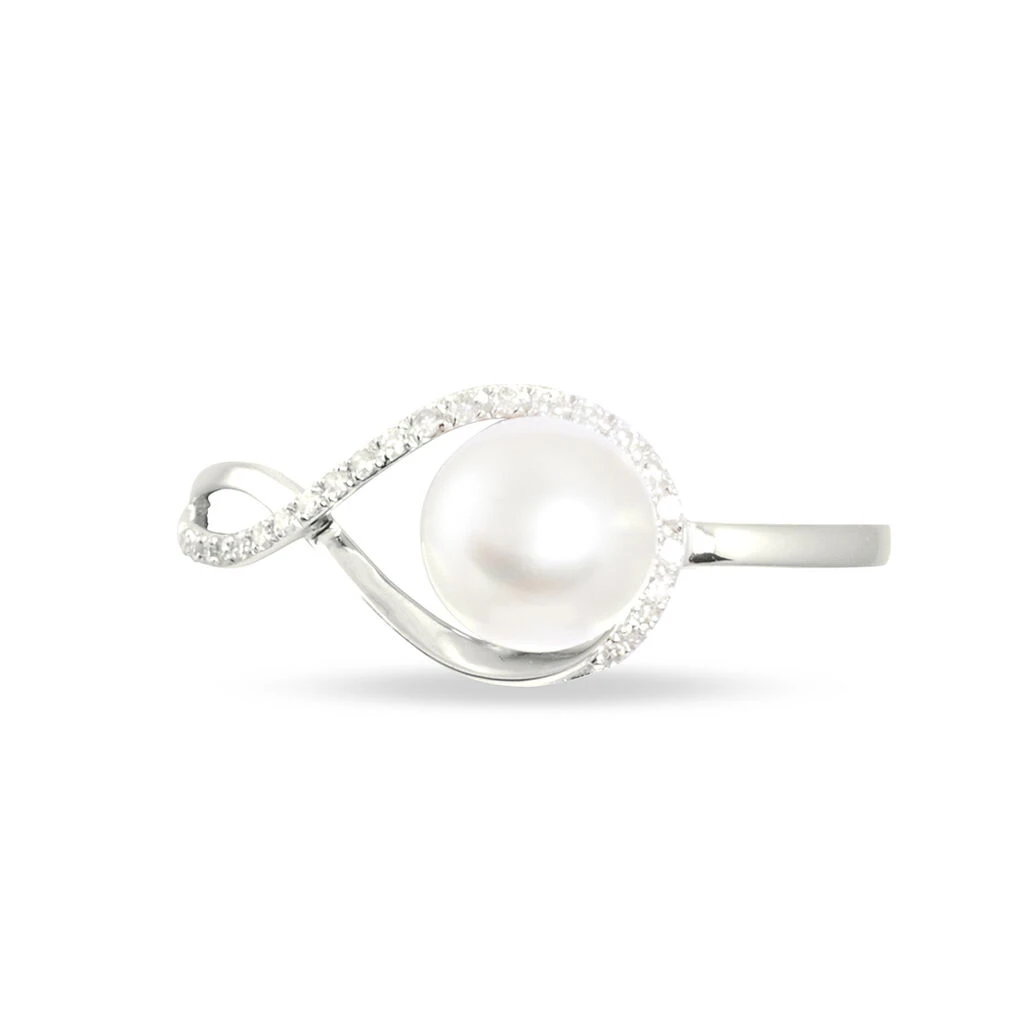 Bague Or Blanc 375/1000 Perle De Culture Et Diamant