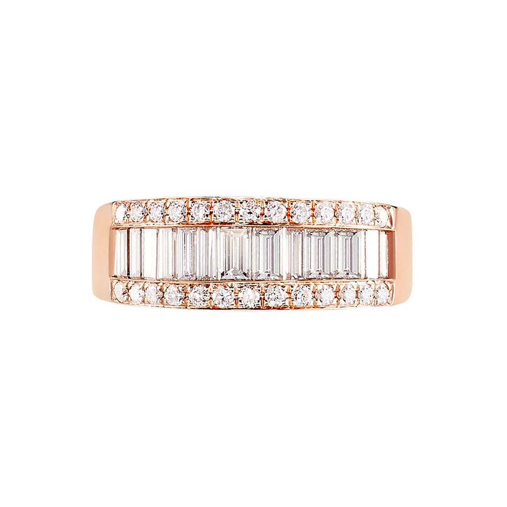 Bague Or Rose 375/1000 Gm Diamants Baguettes 1.01cts Et Ronds