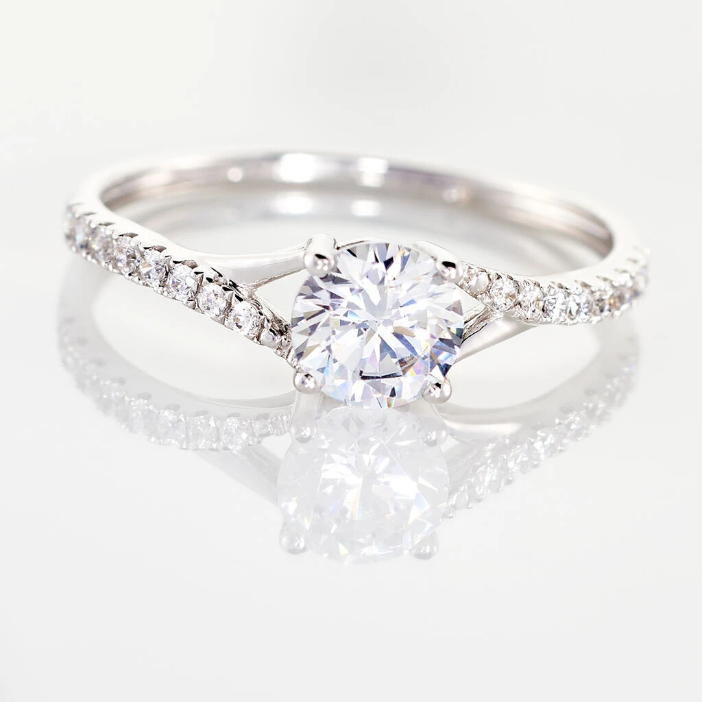 Bague Or Blanc 375/1000 Pierre Oxyde De Zirconium De Centre Corps Accompagne Cote