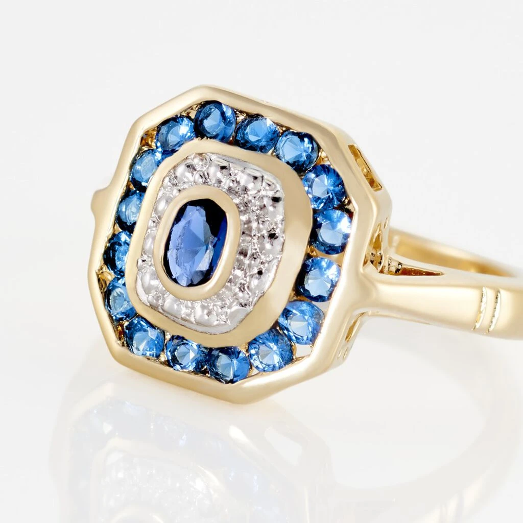 Bague Plaque Or Jaune Carree Oxydes De Zirconium Et Pierres Bleues