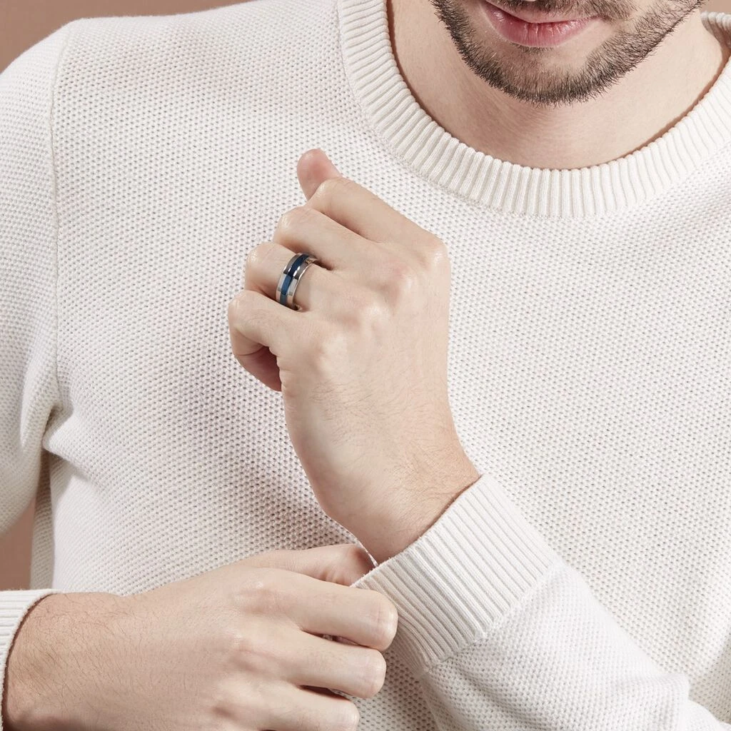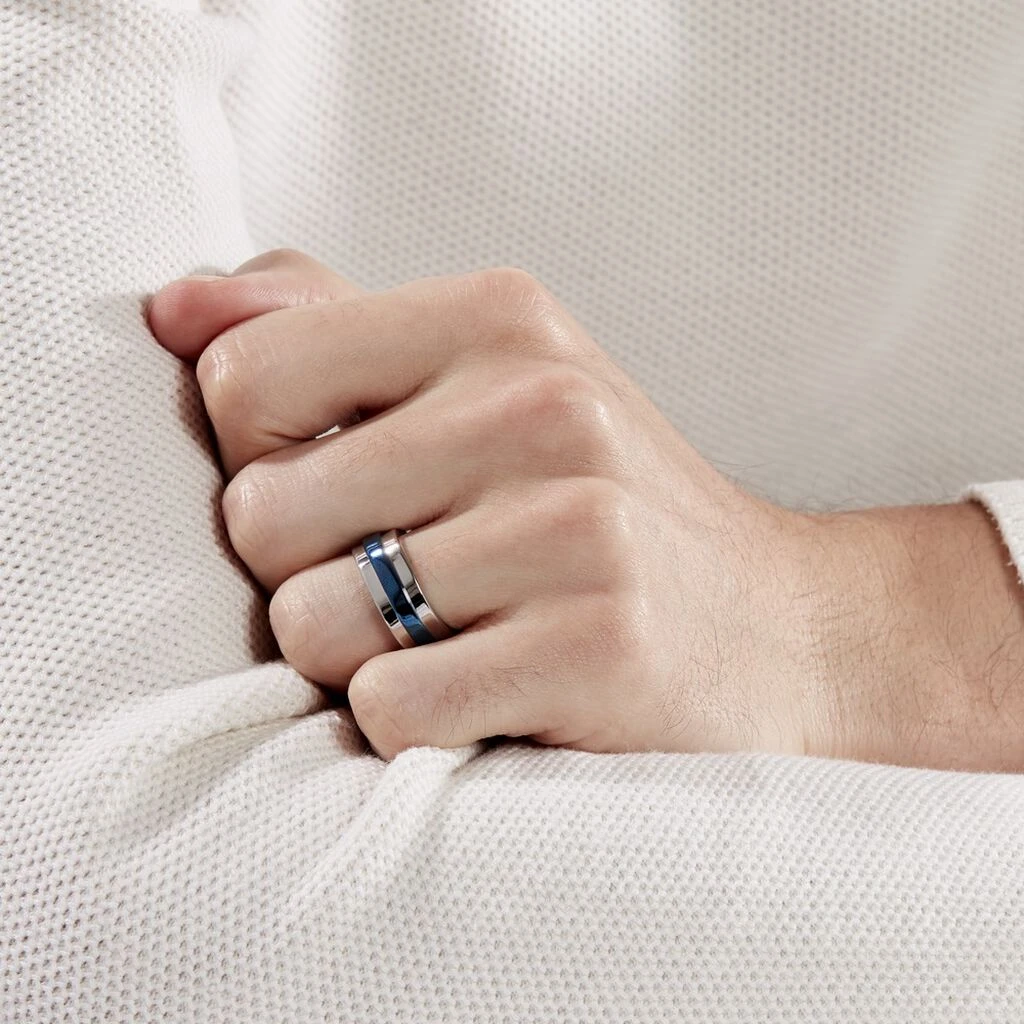 Bague Acier Bicolore Bleu Et Blanc Tour Complet
