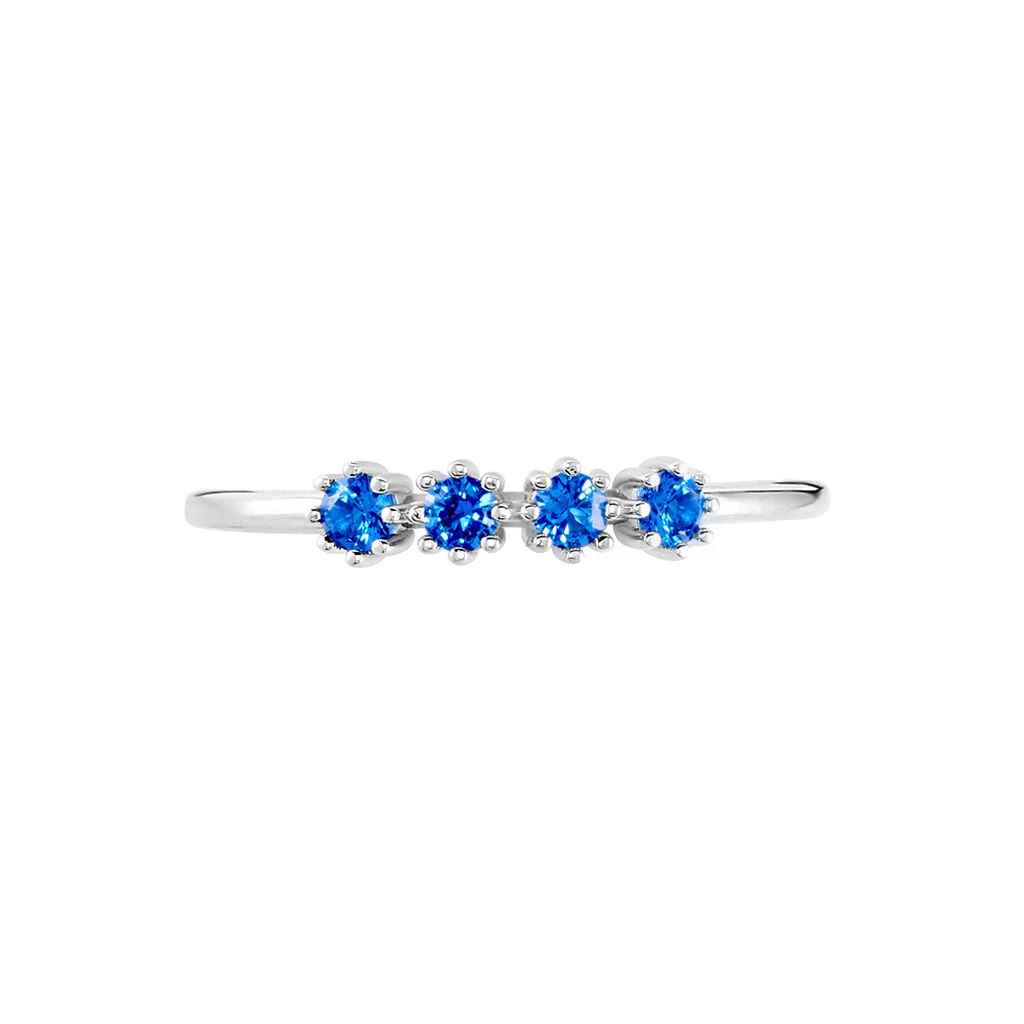 Bague Argent 925/1000 4 Oxydes De Zirconium Bleus Serti Griffes Effet Perlé