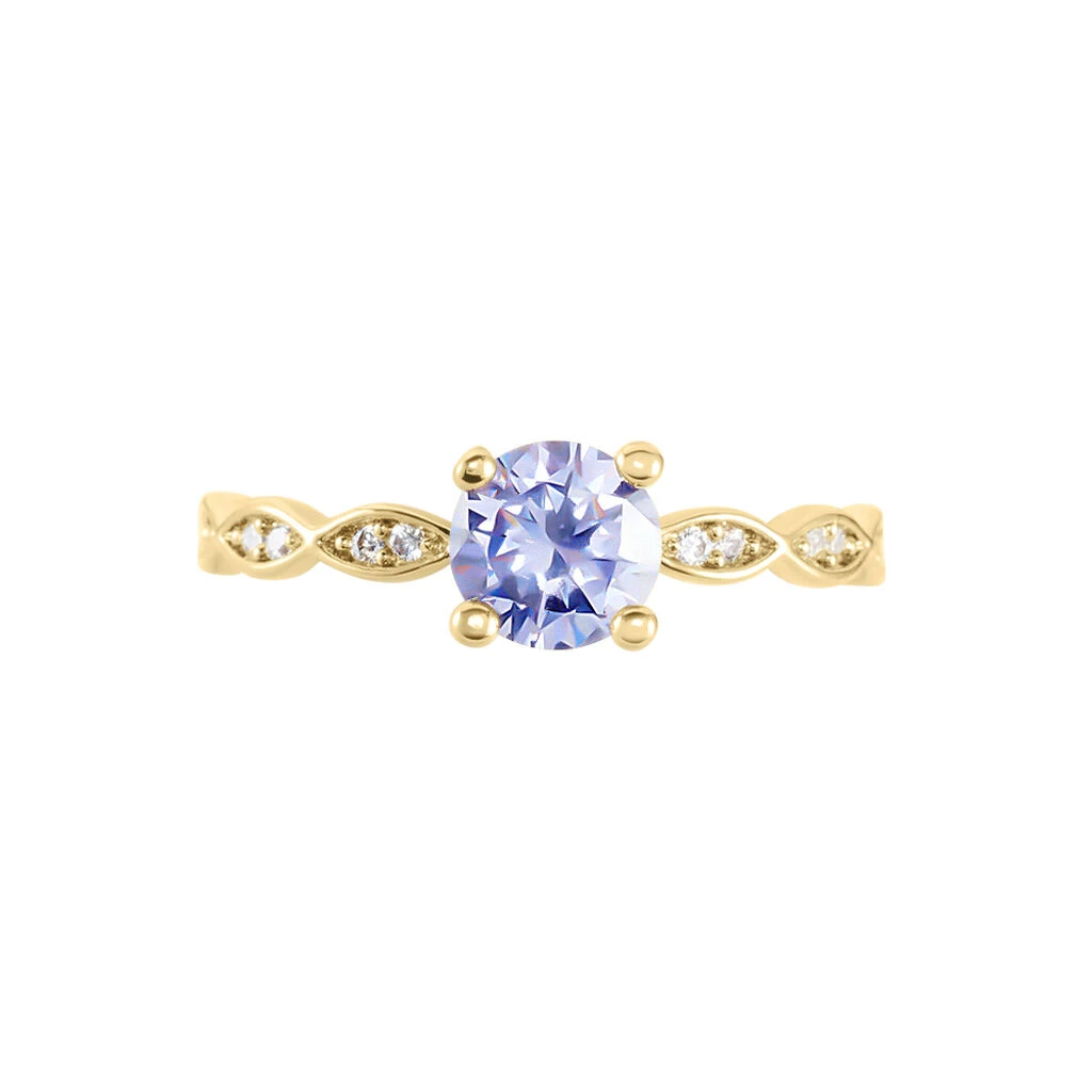 Bague Plaqué Or Jaune Solitaire Oxyde De Zirconium Lavande 4 Griffes Pavage Oxydes De Zirconium