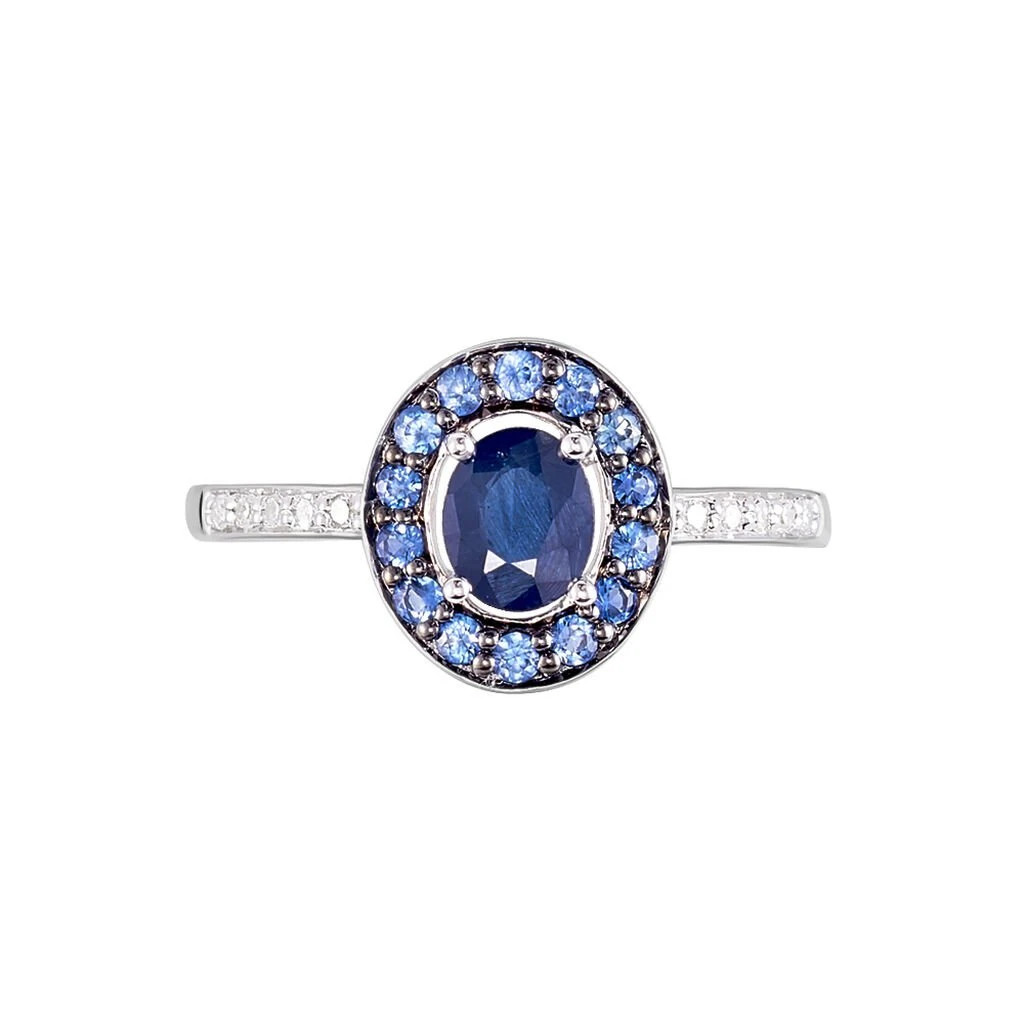 Bague Or Blanc 375/1000 Saphir Central Entourage Saphirs Corps De Bague Pavage Diamants
