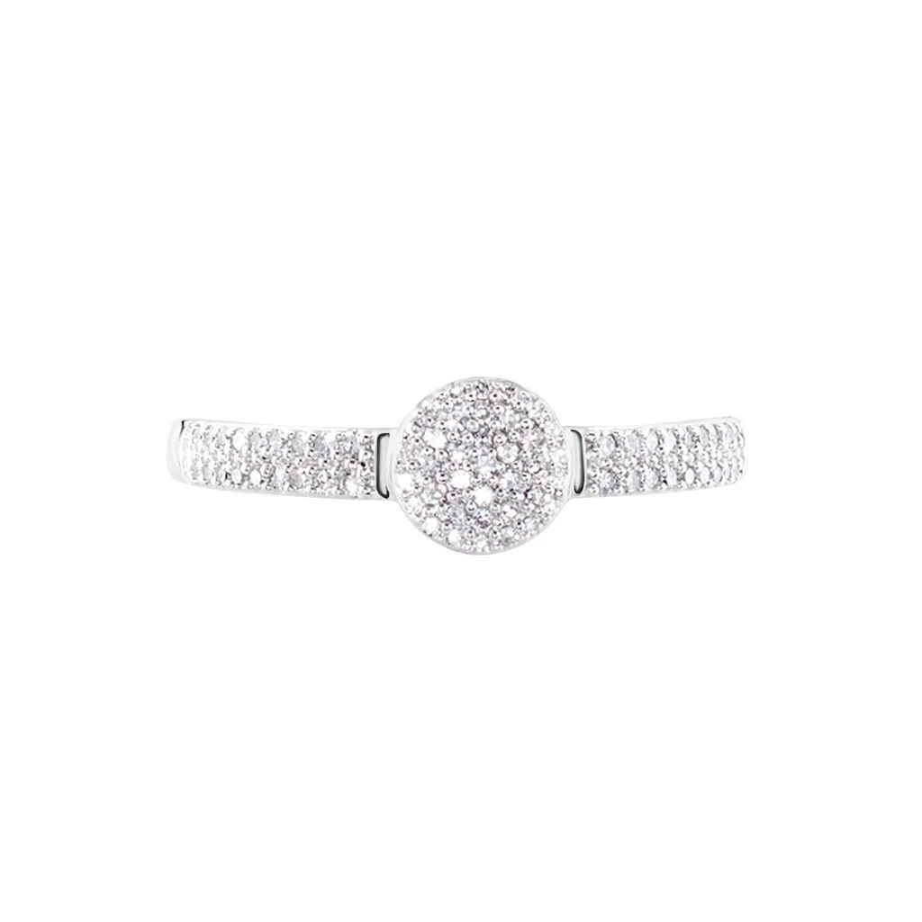 Bague Or Blanc 375/1000 Multipierre Accompagne Rond Pavage Diamants