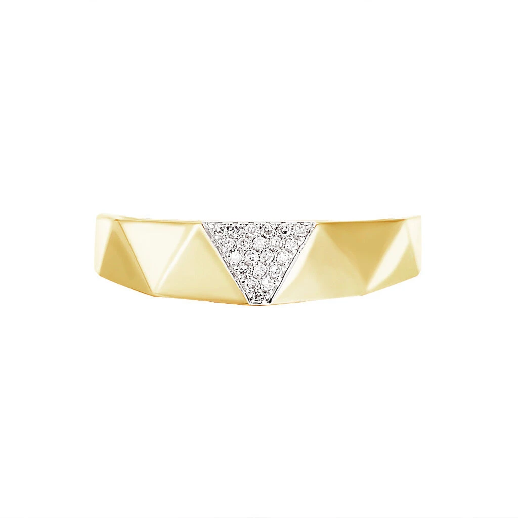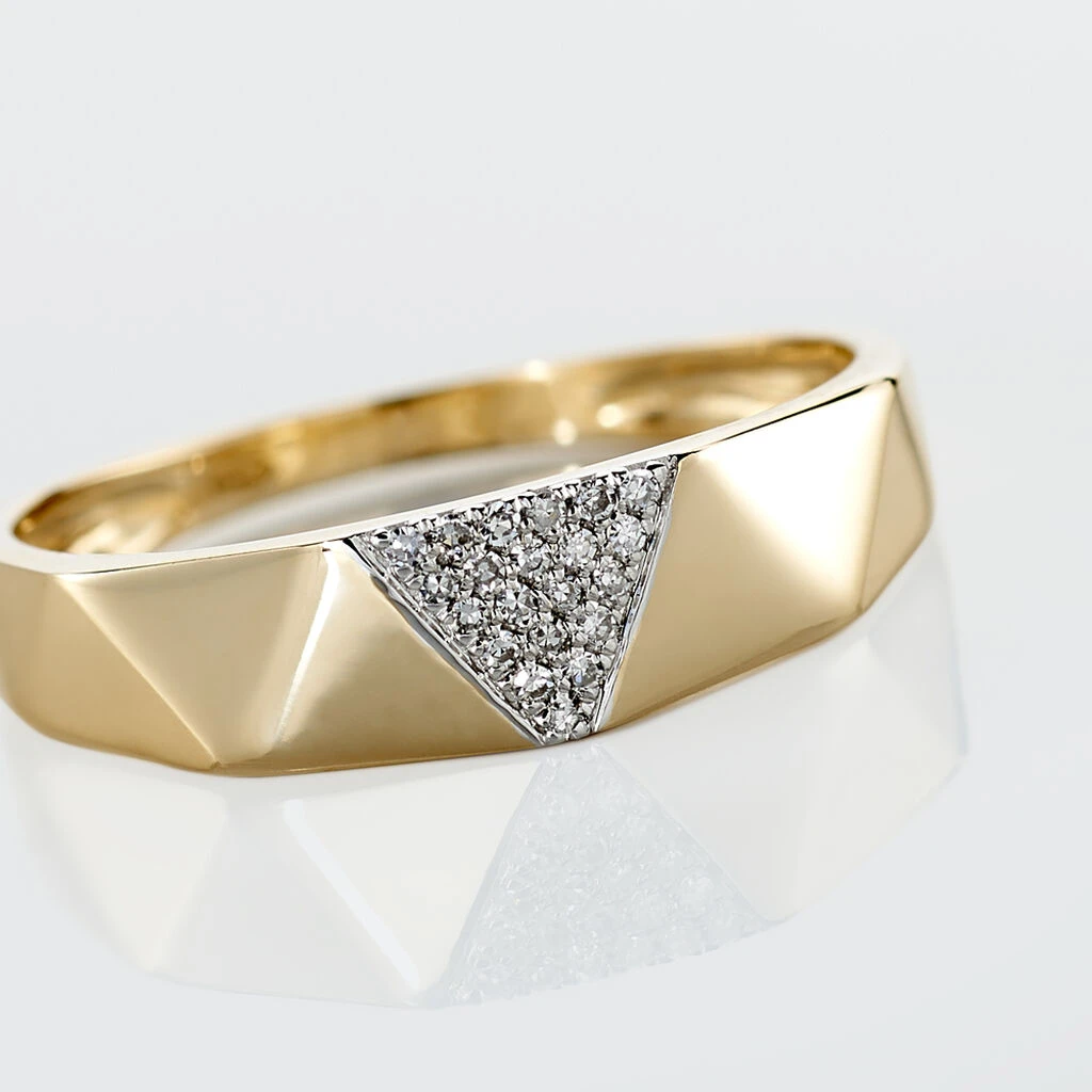 Bague Or Jaune 375/1000 Motifs Triangles Facettes Pavage Diamants