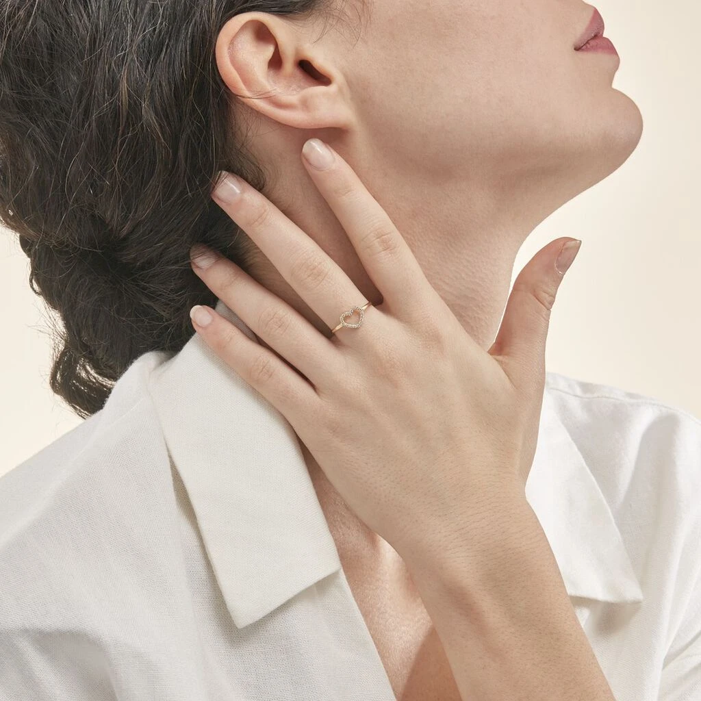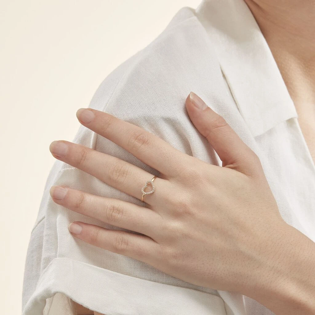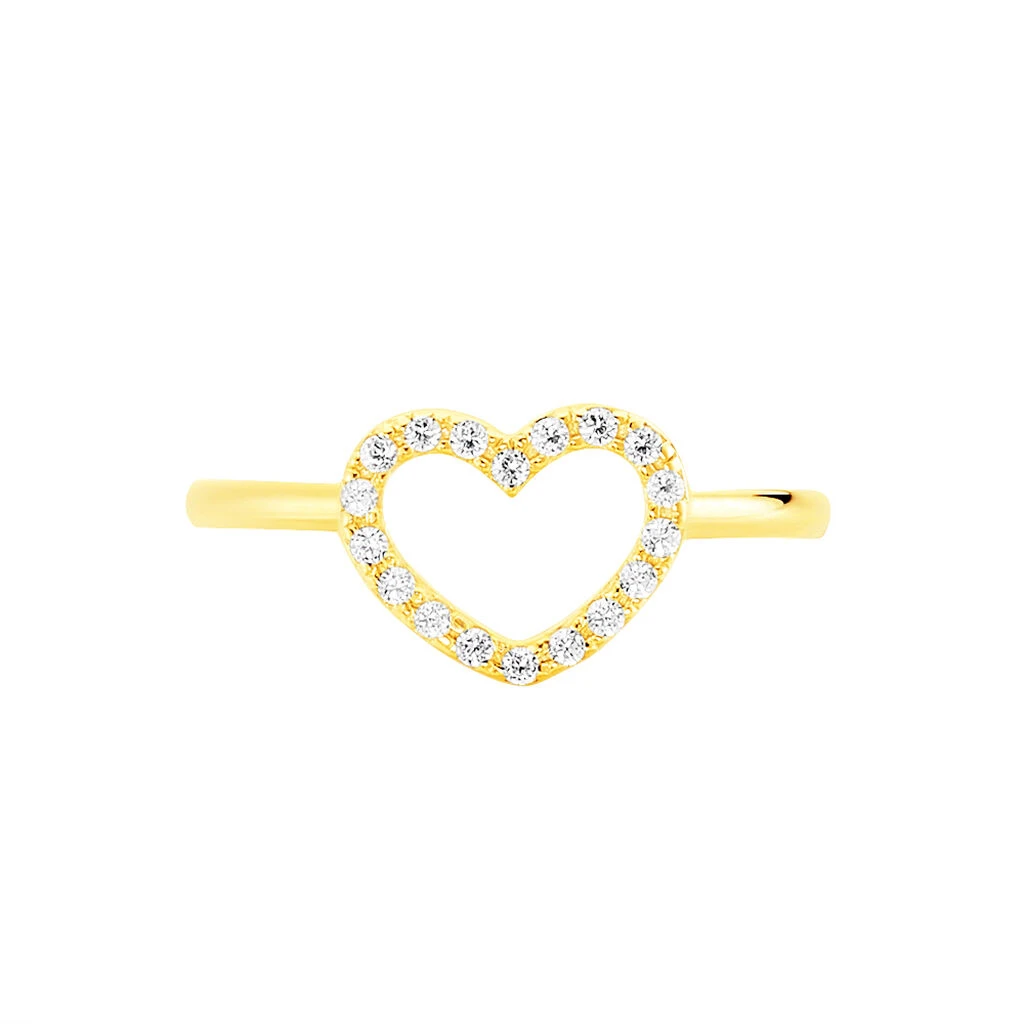 Bague Or Jaune 375/1000 Cœur Ajoure Oxydes De Zirconium