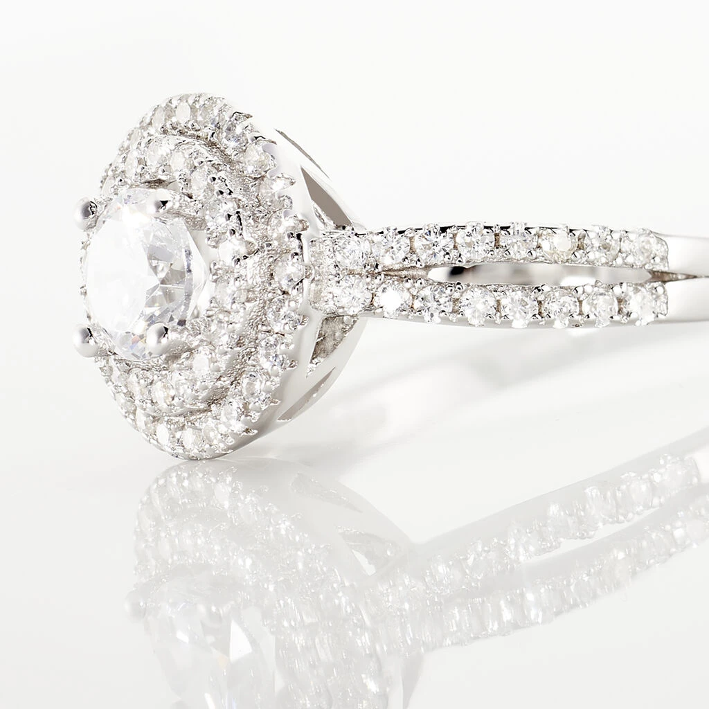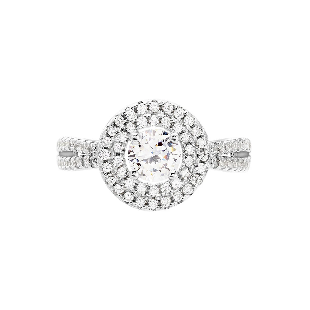 Bague Argent Blanc 925/1000 Oxyde De Zirconium Central Entourage Oxydes De Zirconium
