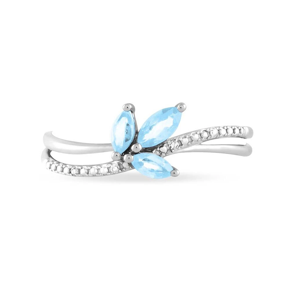 Bague Or Blanc 750/1000 Topazes Bleues Claires Forme Navette Et Diamants Sur Corps De Bague