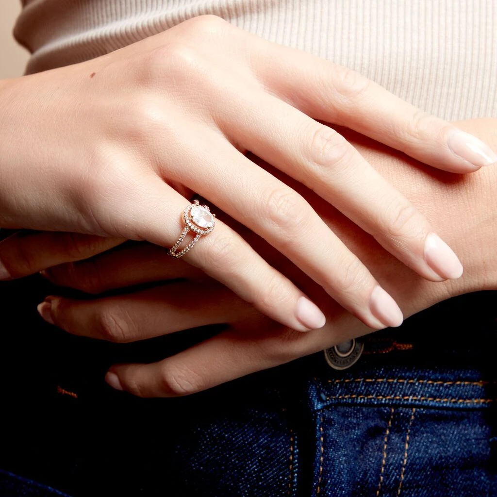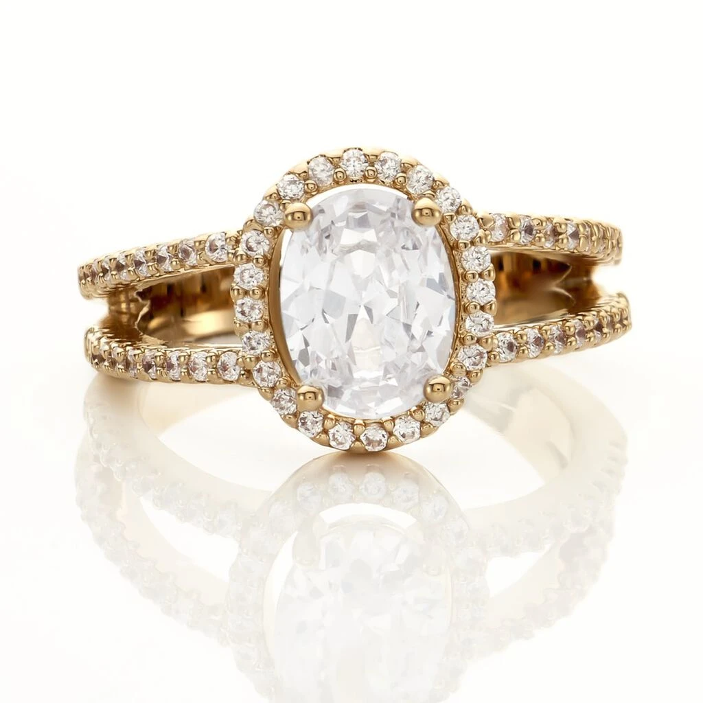 Bague Plaqué Or Jaune Oxyde De Zirconium Ovale Entourage Oxydes De Zirconium Bouble Branche