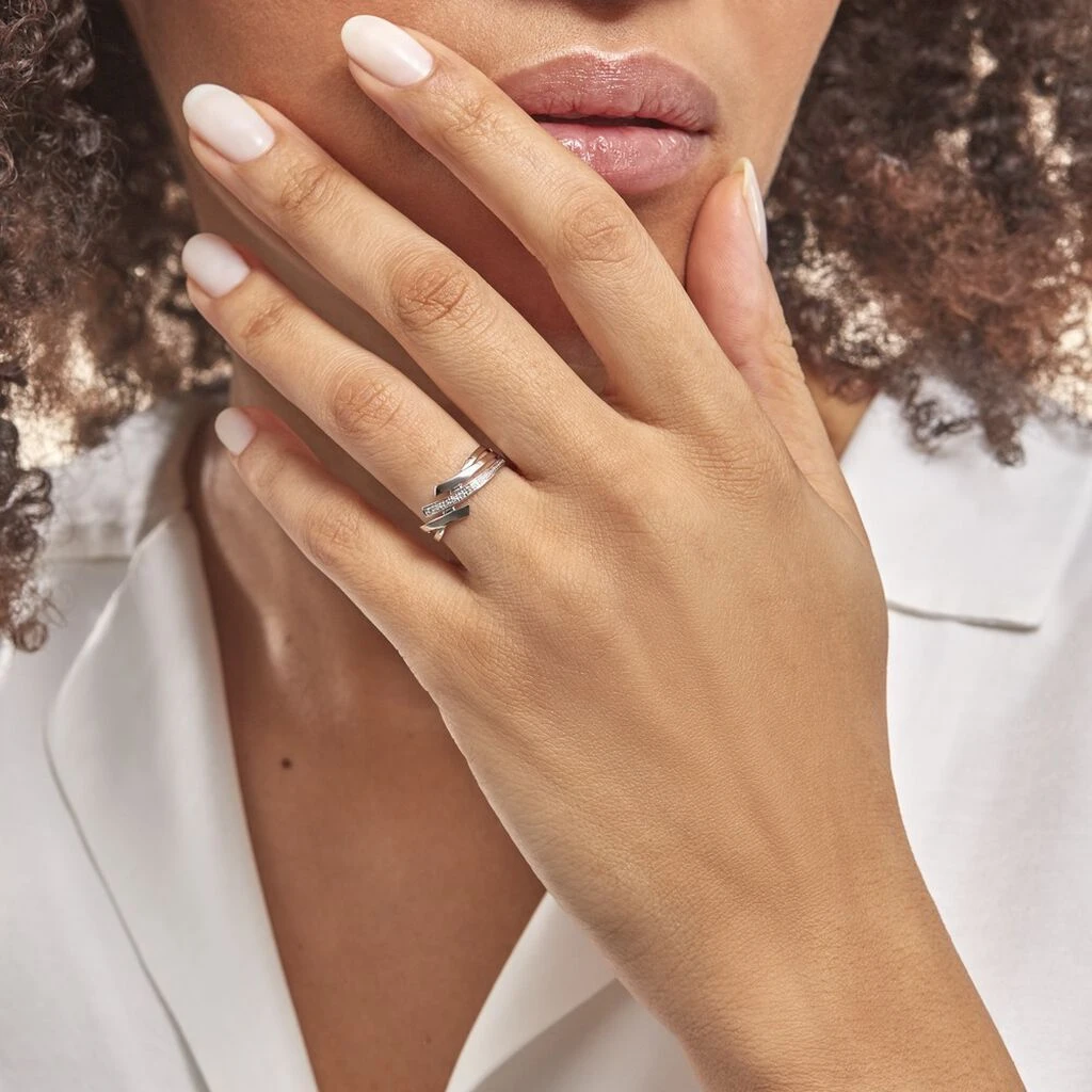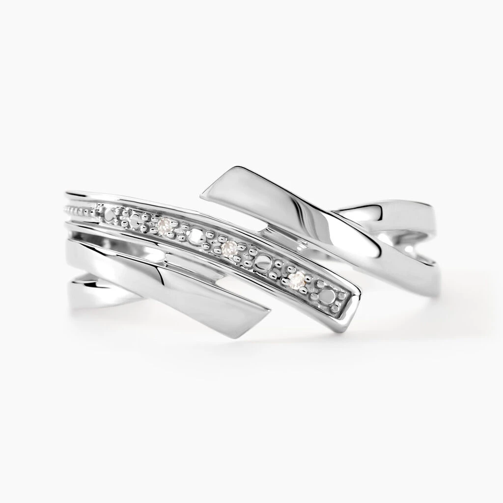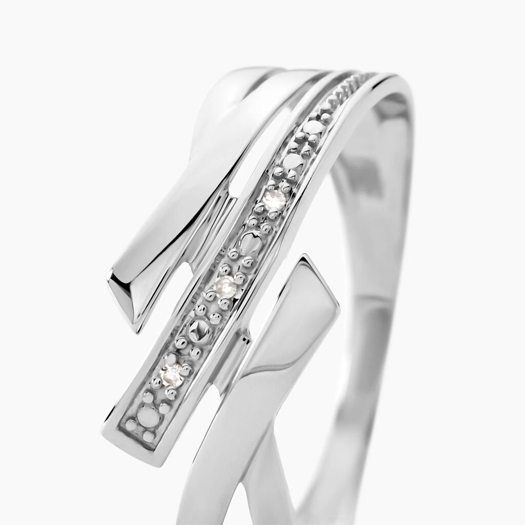 Bague Or Blanc 375/1000 Croisée + Diamants