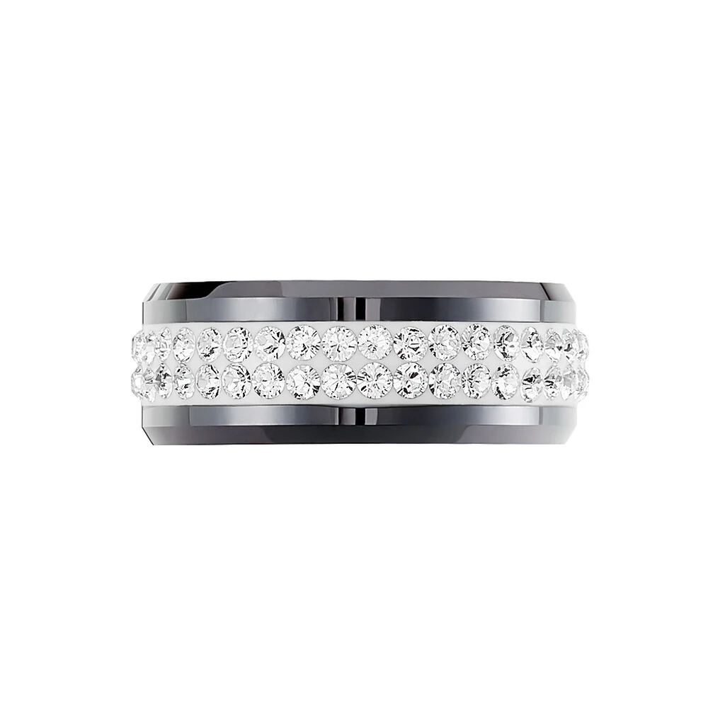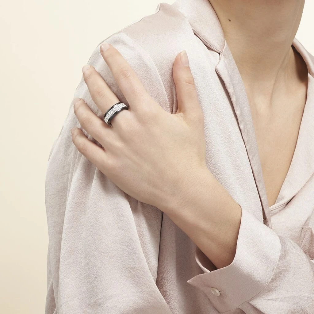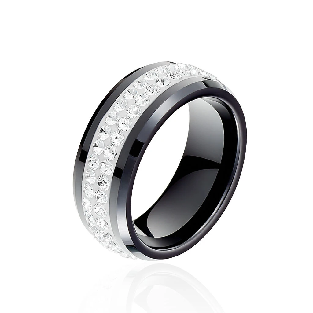Bague Noire Ceramique Blanc Céramique Et Strass