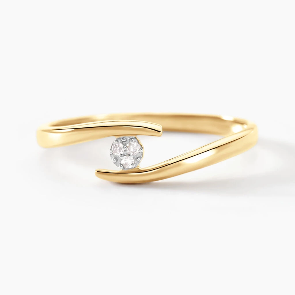 Bague Or Jaune 375/1000 Pastille 3 Diamants 0.015cts
