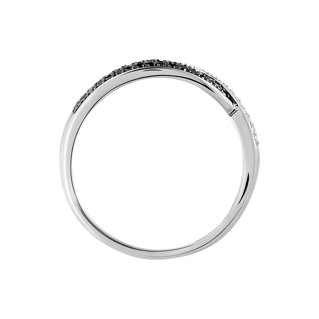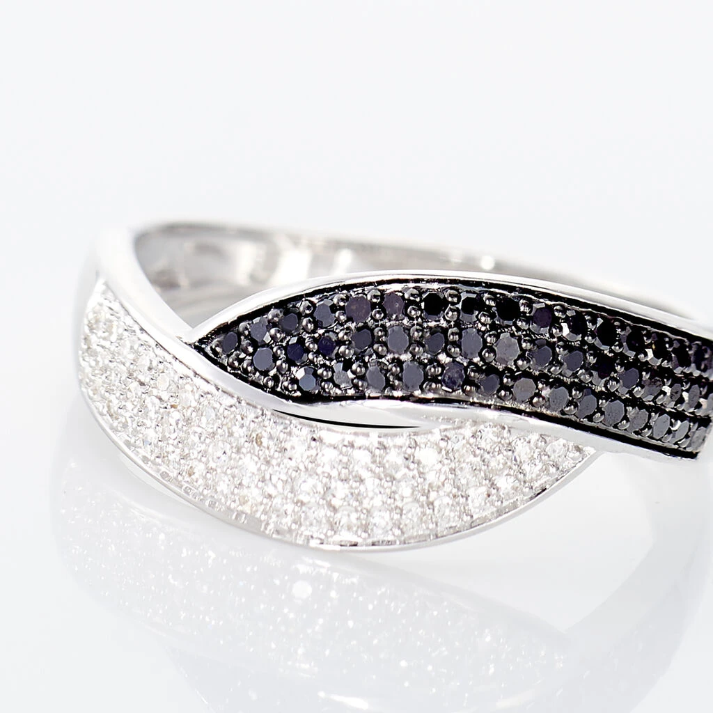 Bague Or Blanc 375/1000 Forme Croisée Diamants Noirs Et Diamants Blancs