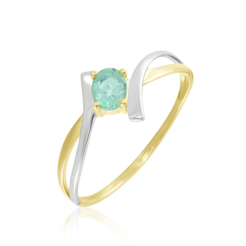 Bague Or Bicolore 375/1000 Emeraude Ovale 0.25 Cts Effet Couteau Serti Griffes