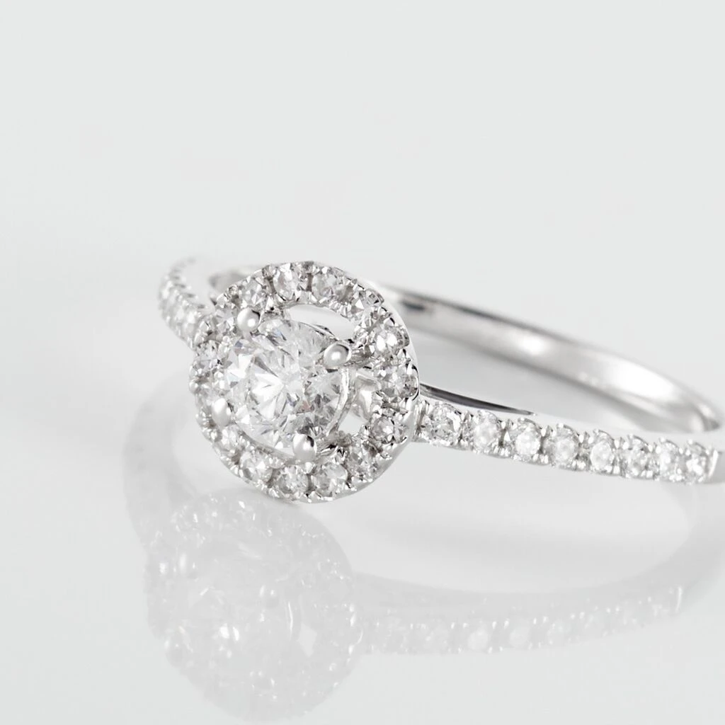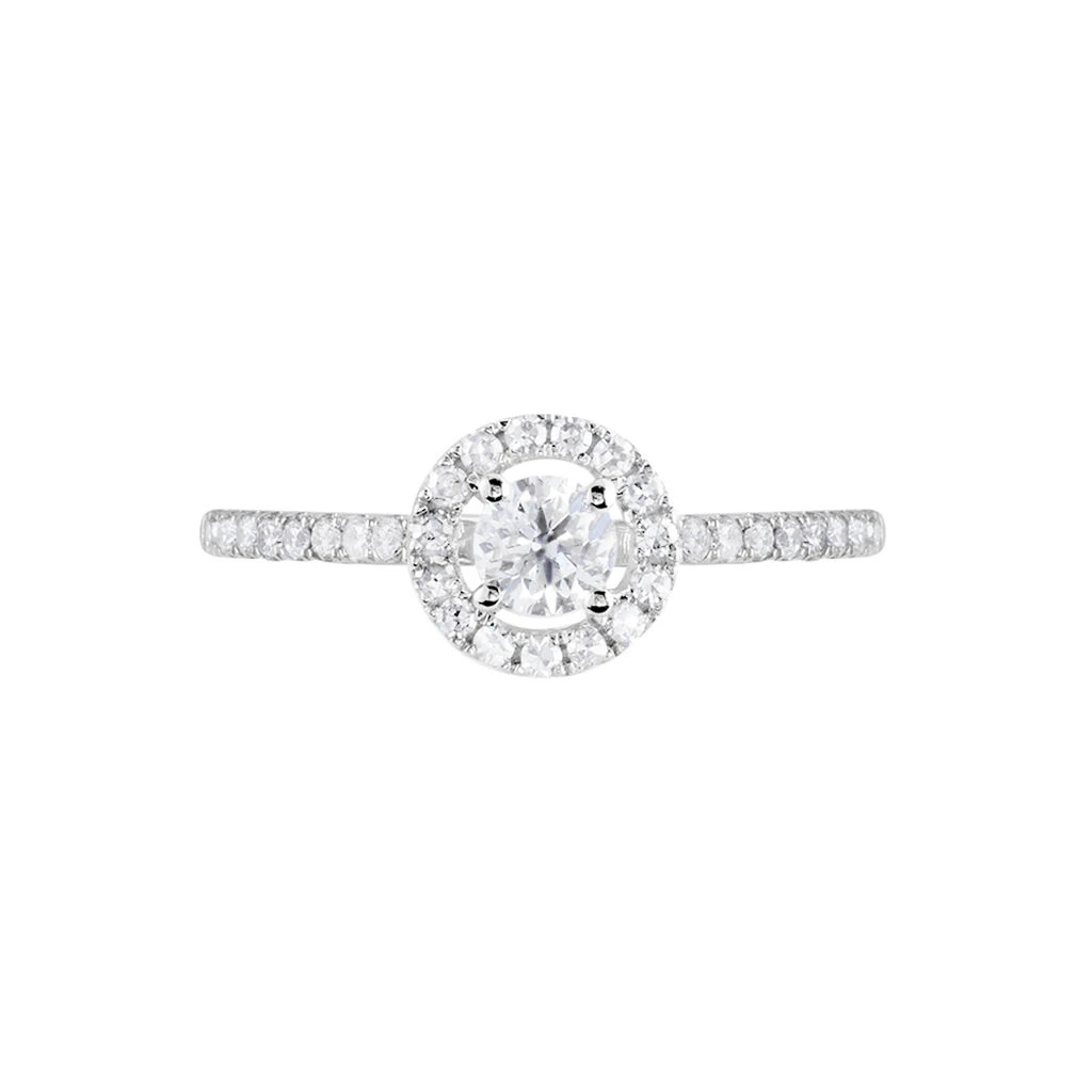 Bague Or Blanc 750/1000 Entourage Accompagné Diamants 0.27cts