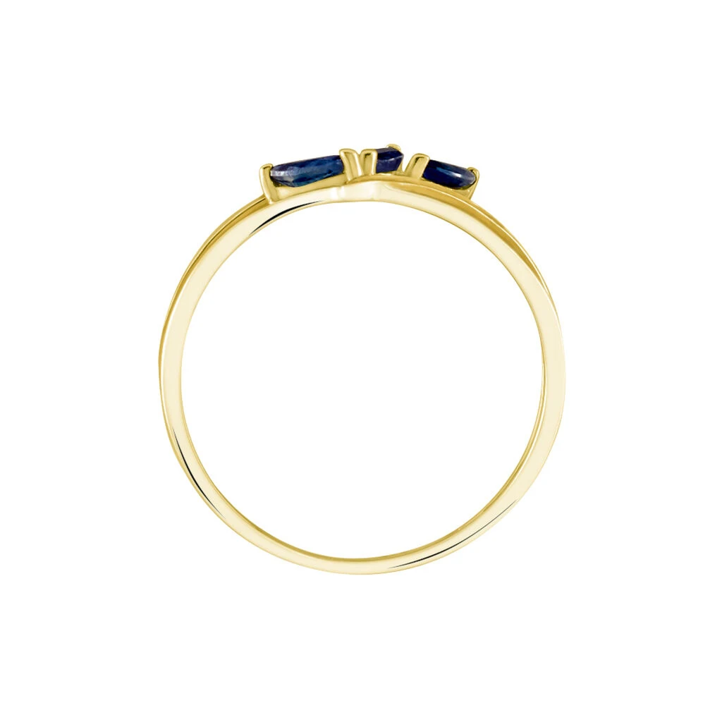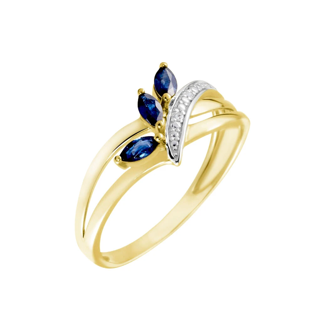 Bague Or Jaune 375/1000 Forme Vague Et Fleur Saphirs Tailles Navettes Et Diamants
