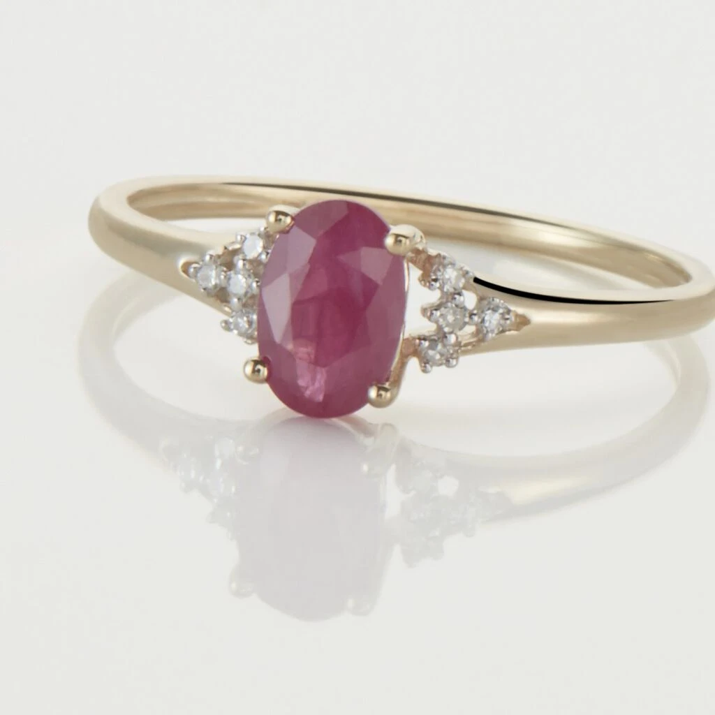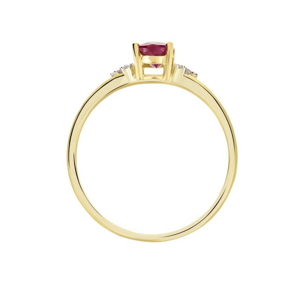 Bague Or Jaune 375/1000 Rubis Rouge 0.6 Cts Serti Griffes Accompagne De Diamants