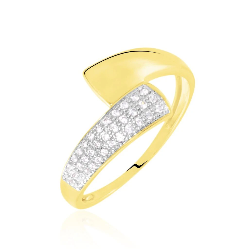 Bague Or Jaune 375/1000 Pavage Oxydes De Zirconium Croise
