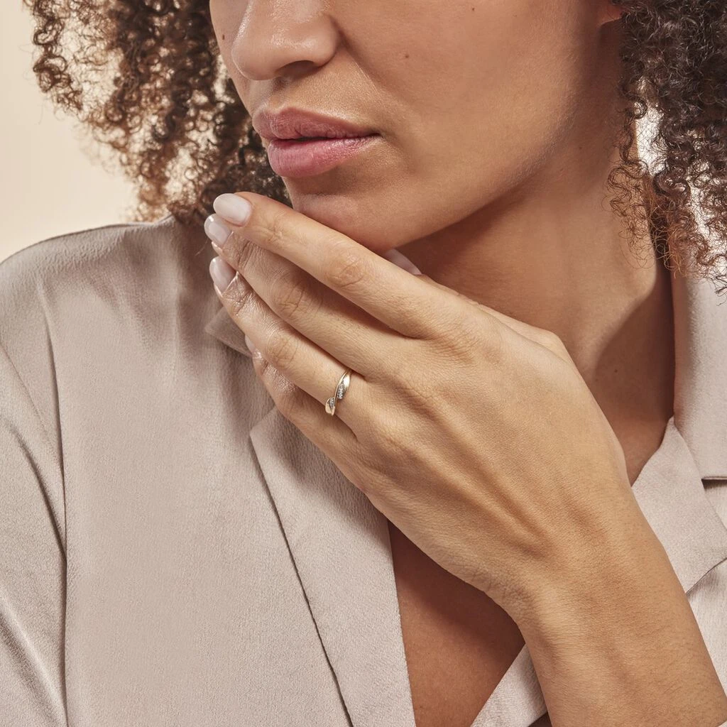 Bague Or Jaune 375/1000 Vague Ajouree Pavage Diamants