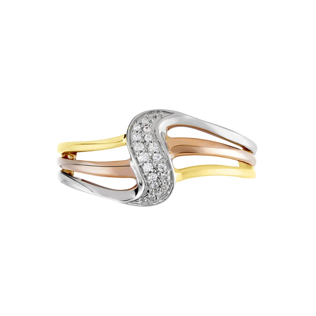 Bague Or Tricolore 375/1000 Forme Vague Oxydes De Zirconium
