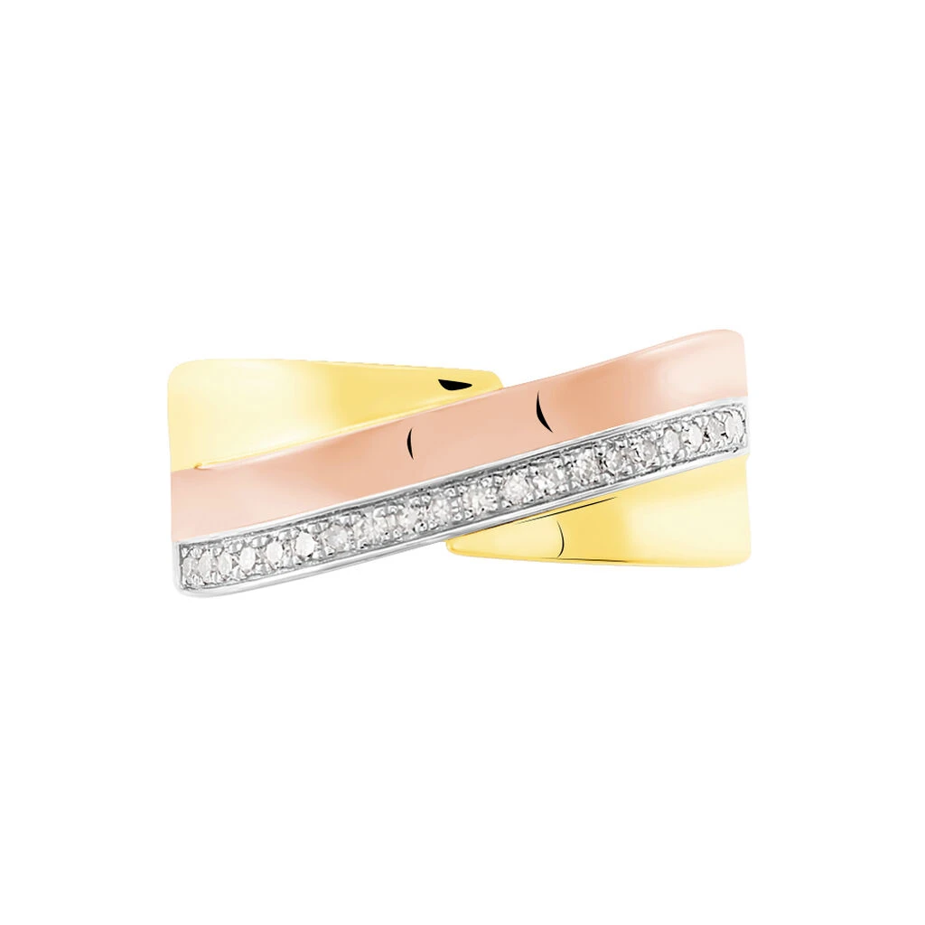 Bague Or Tricolore 375/1000 Motifs Anneaux Entrelacées Ajourées Diamants