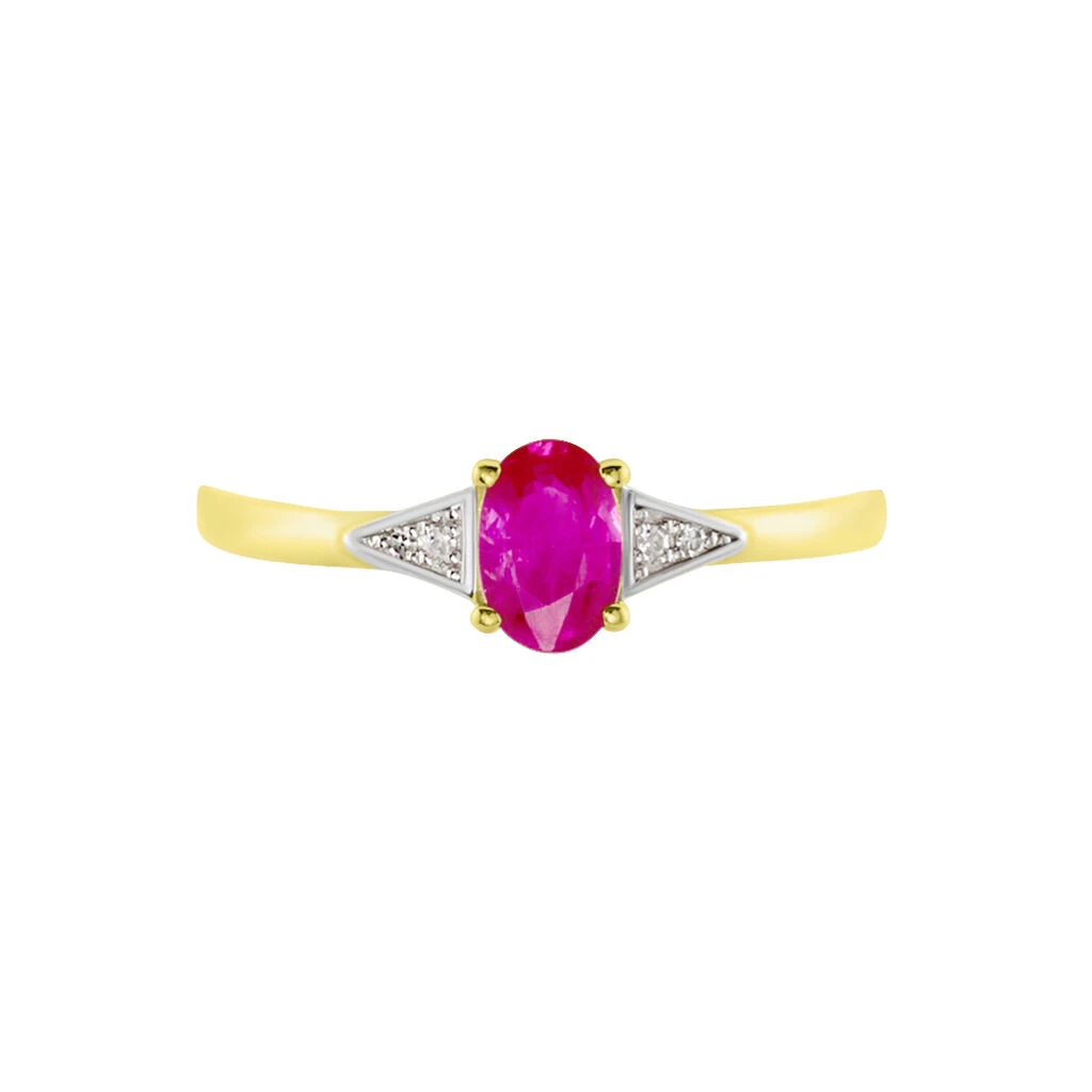 Bague Solitaire Accompagné Or Jaune Ludmilla Rubis Diamants