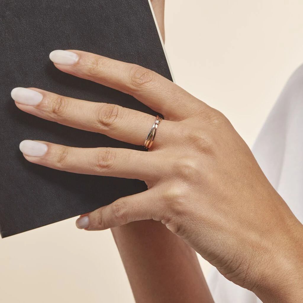 Bague Solitaire Or Tricolore 375/1000 Diamant 0.05cts S