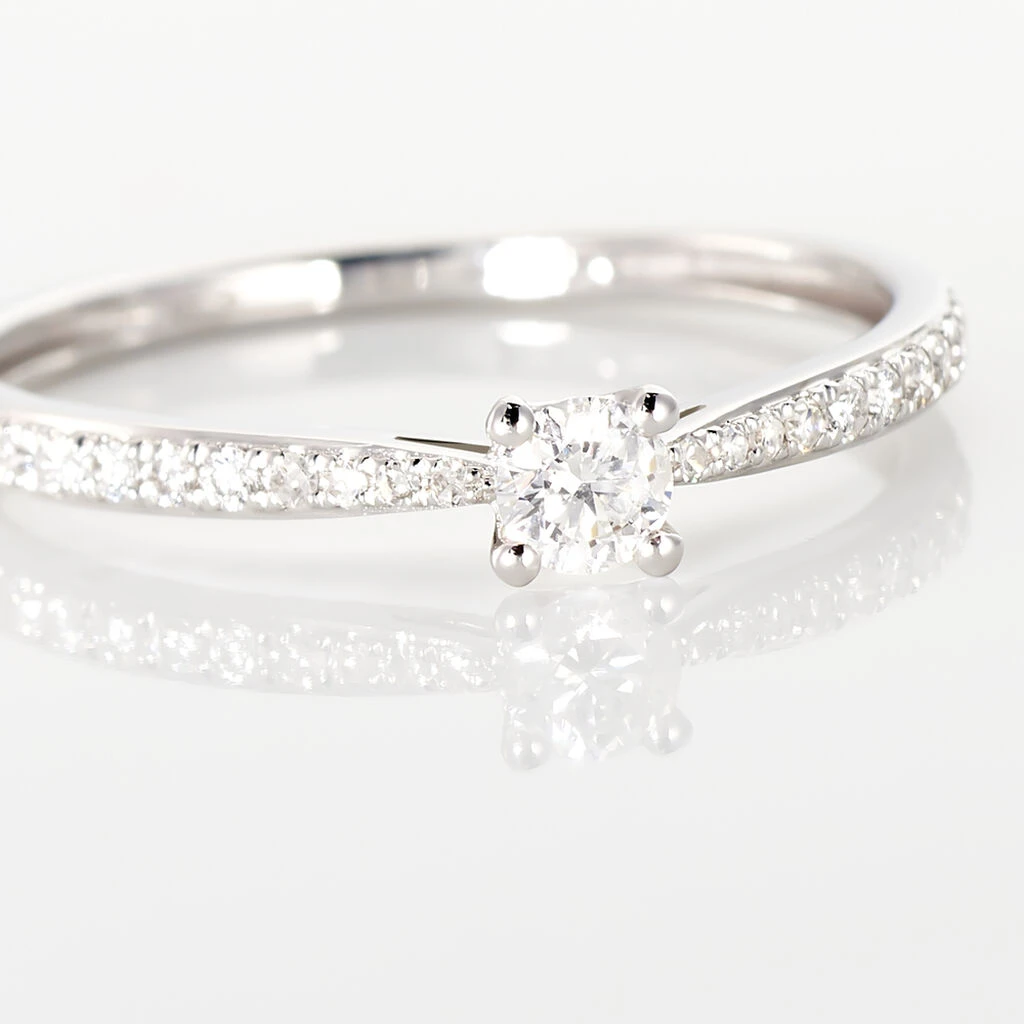 Solitaire Or Blanc 750/1000 Diamant Central 0.10cts Serti Griffes Accompagnes Diamants