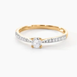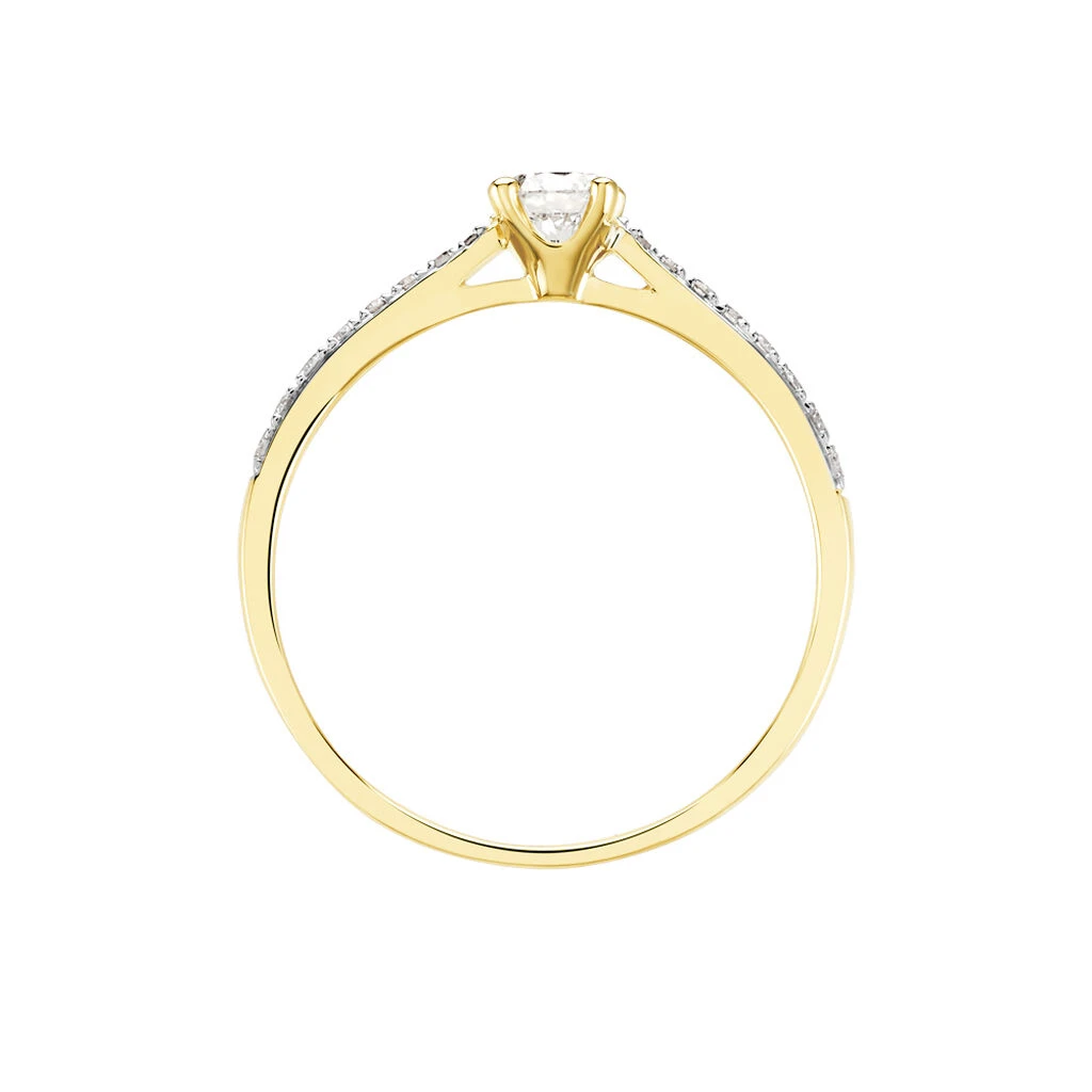Solitaire Or Jaune 375/1000 Diamant Central 0.20cts Serti Griffes Accompagne Diamants