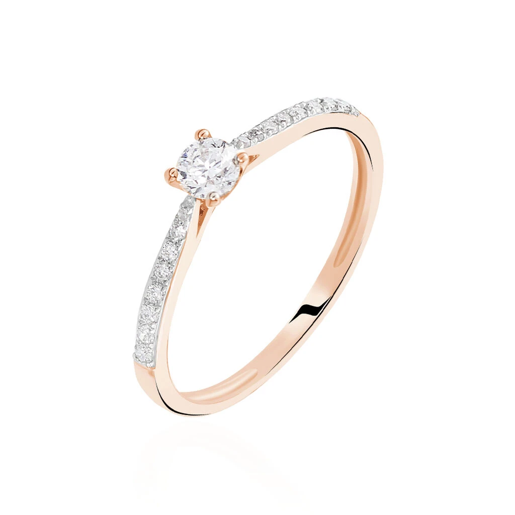 Solitaire Or Rose 375/1000 Diamant Central 0.20cts Serti Griffes Accompagne Diamants