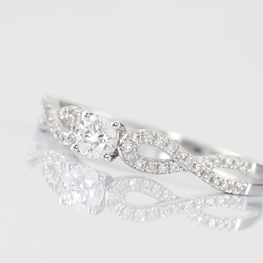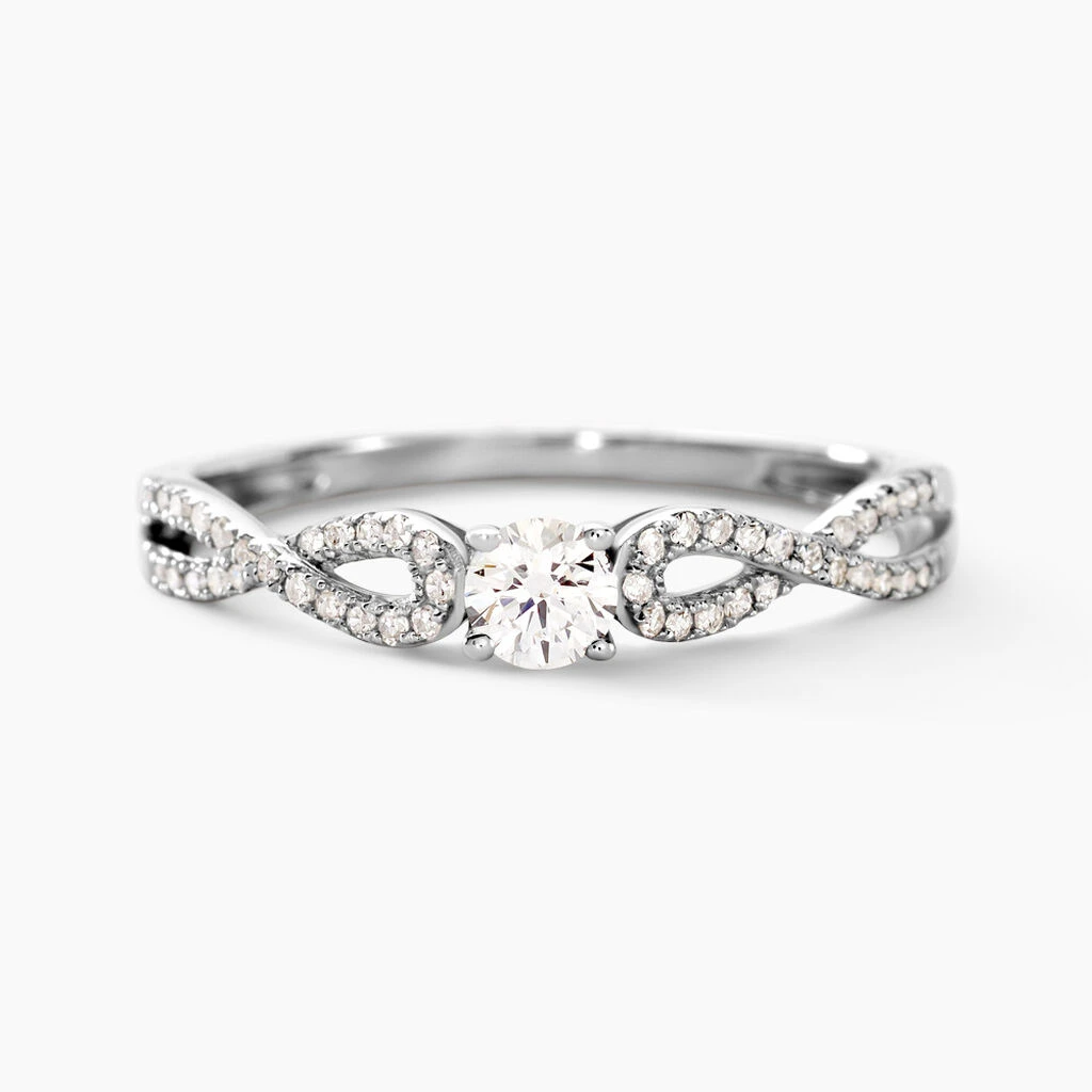 Solitaire Or Blanc 375/1000 Diamant Central 0.15cts Accompagne Diamants Corps De Bague Entrelace
