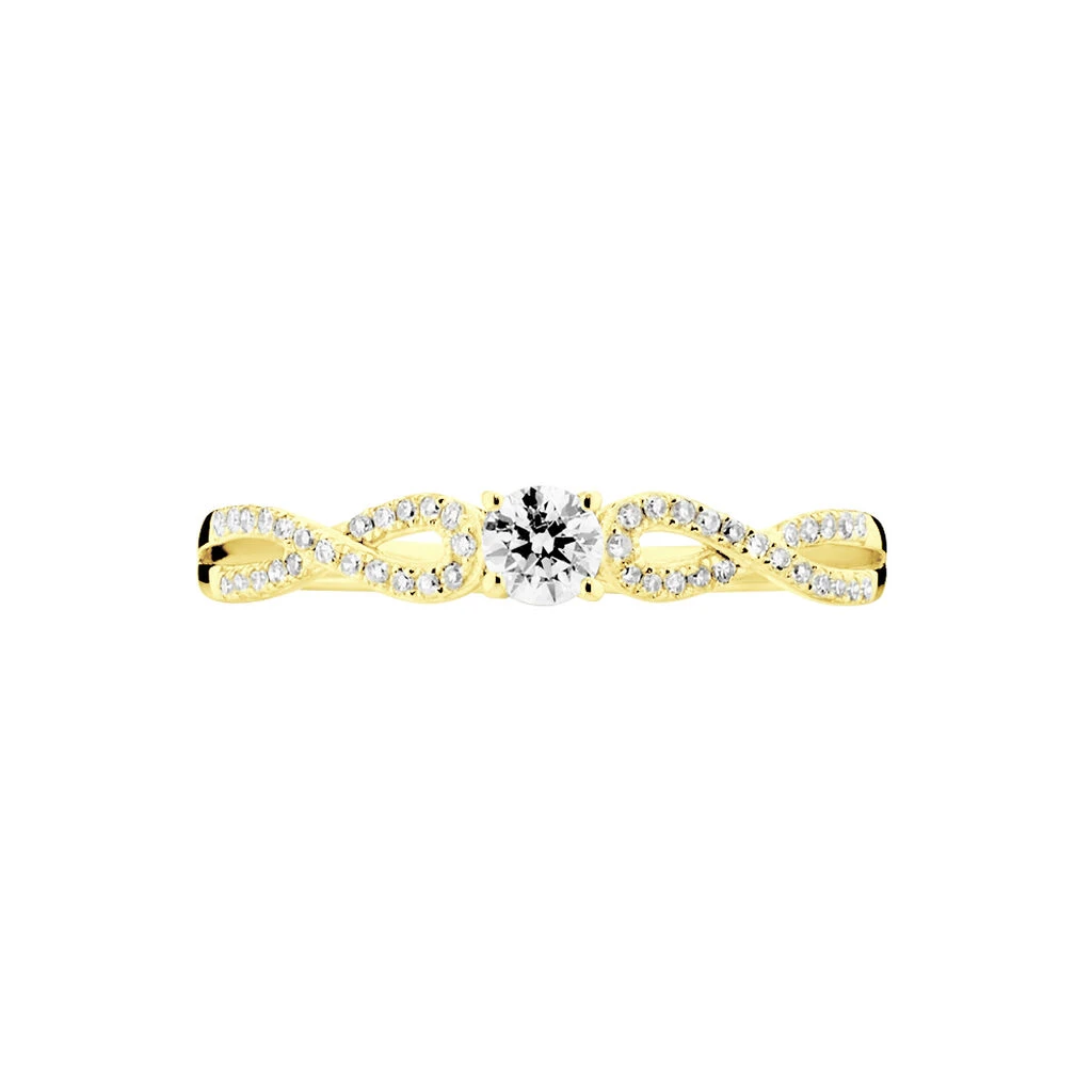 Solitaire Or Jaune 750/1000 Diamant Central 0.15cts Accompagne Diamants Corps De Bague Entrelace